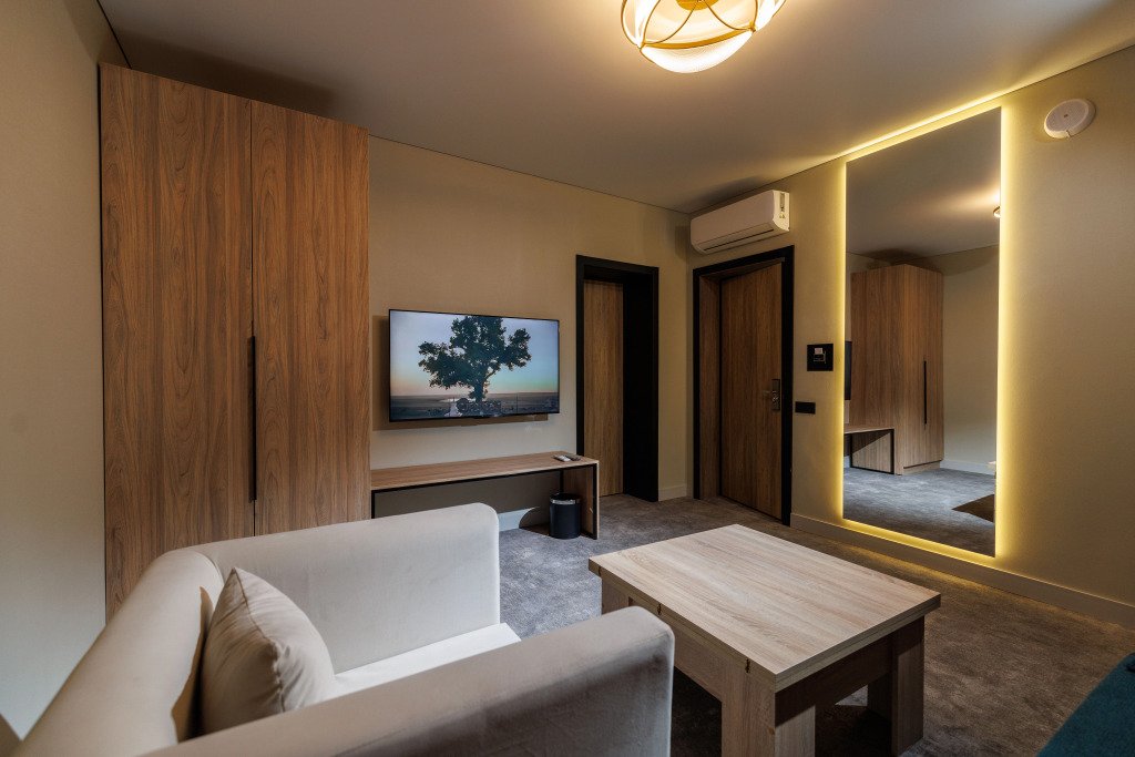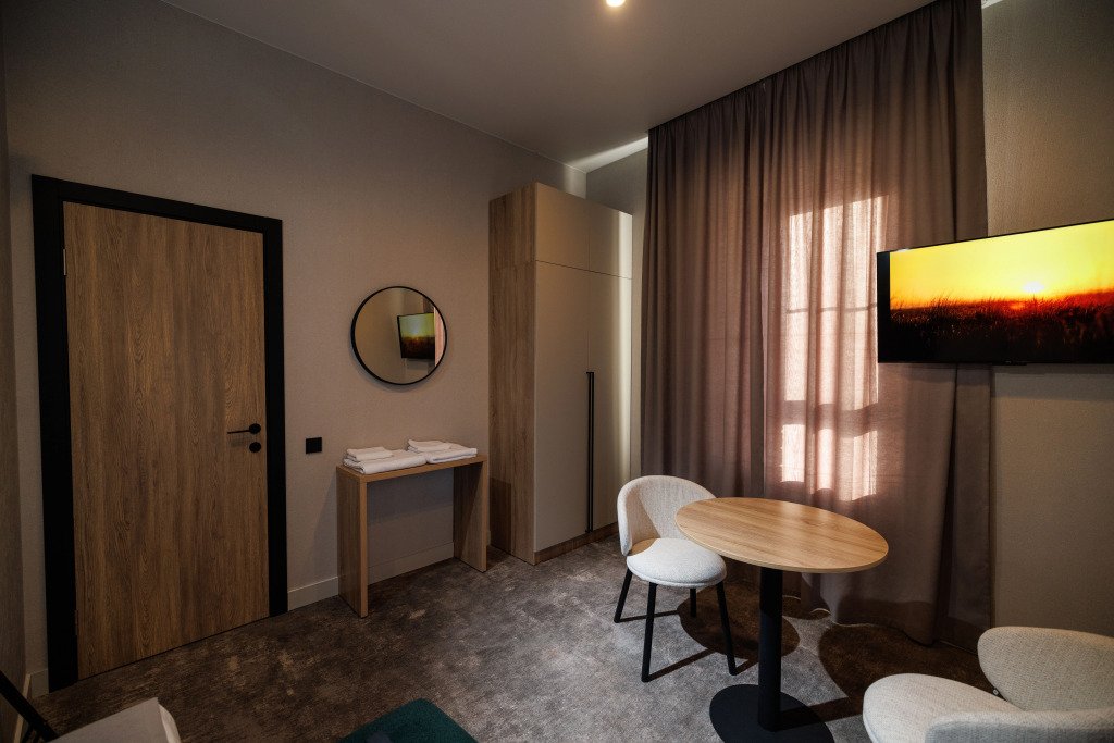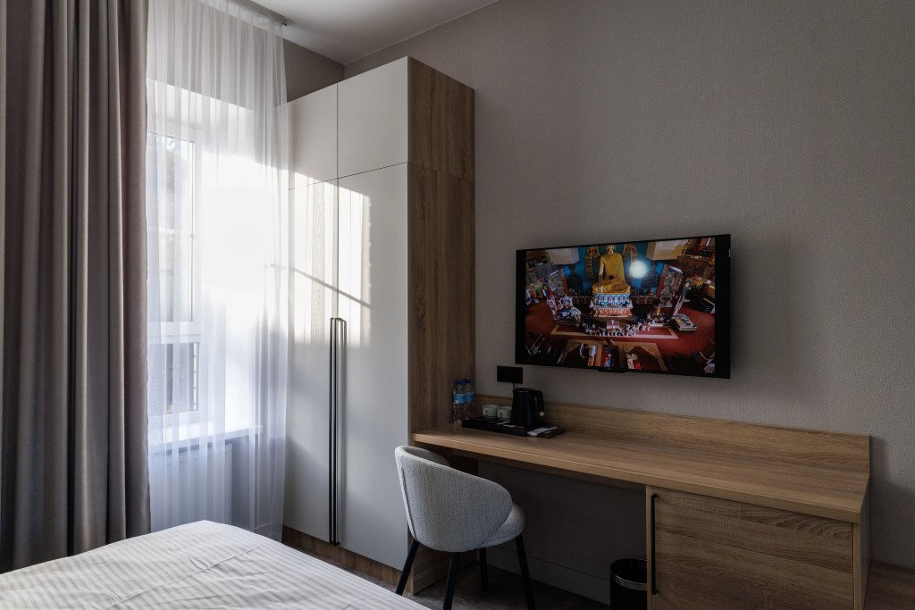 В номере есть телевизор. Оснащение зависит от выбранной категории номера.
