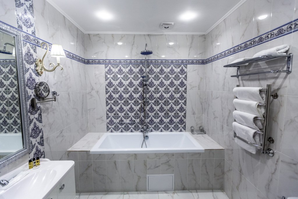 Все очень современно. Чисто. Одноразовые ванные принадлежности. Тапочки. Халаты.