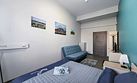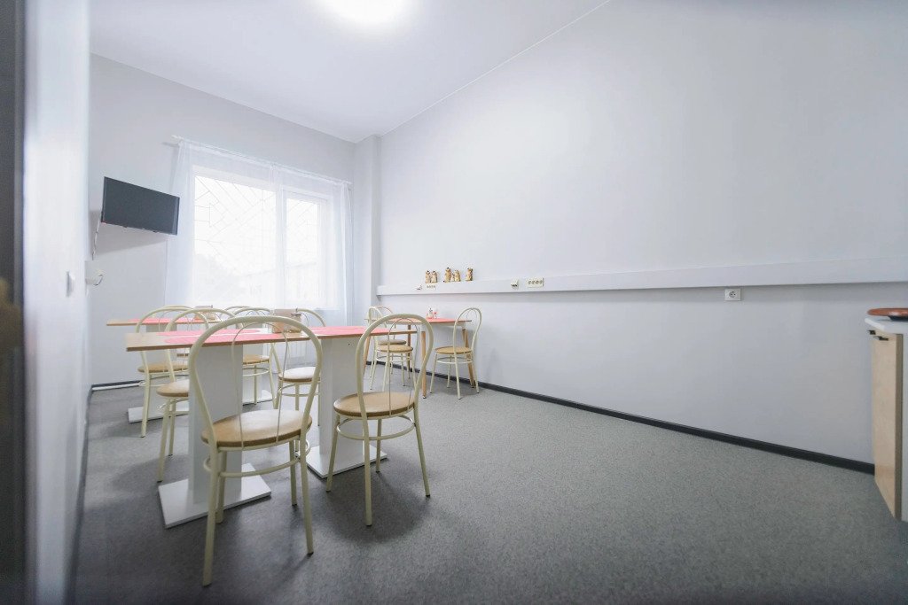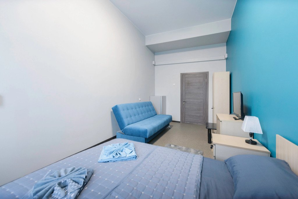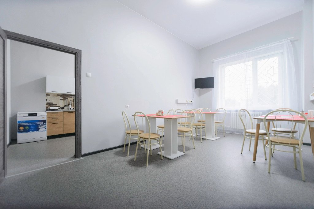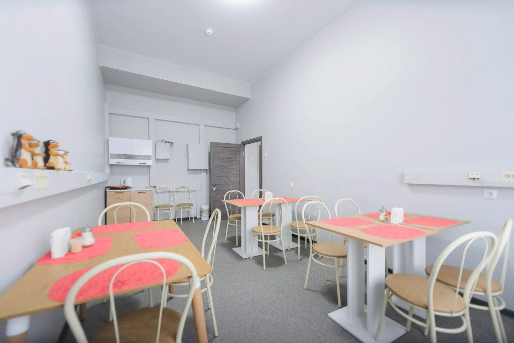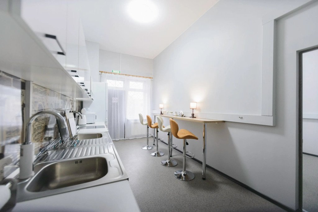 Также для удобства гостей есть место для отдыха с мягкой мебелью и телевизором. Оборудовано пространство с микроволновкой, чайником, холодильником и набором посуды, где гости всегда могут перекусить. В хостеле имеется четыре санузла и четыре душевых комнаты.