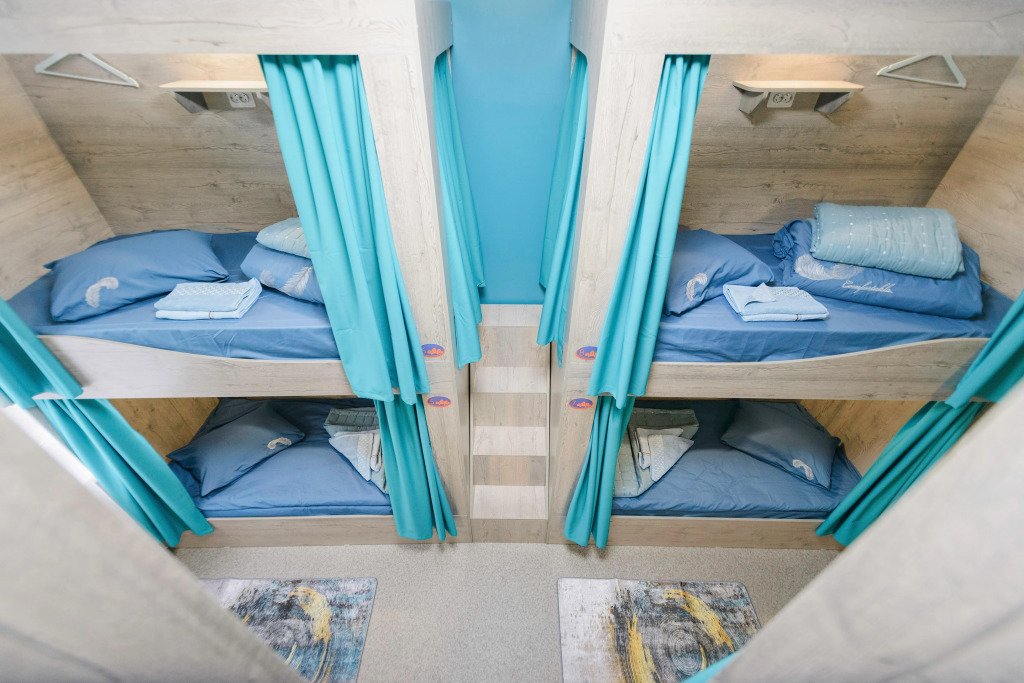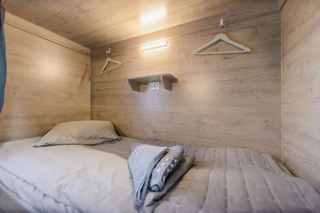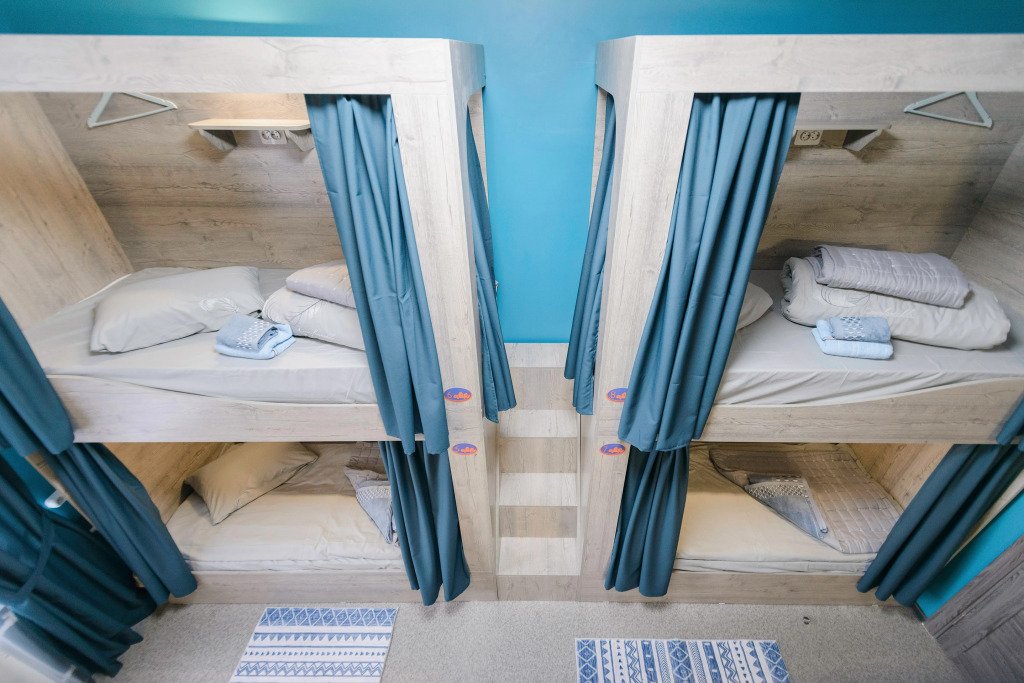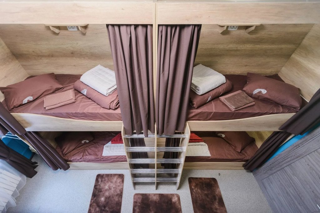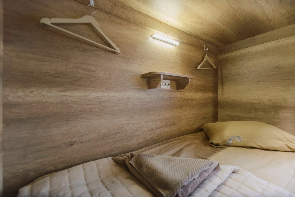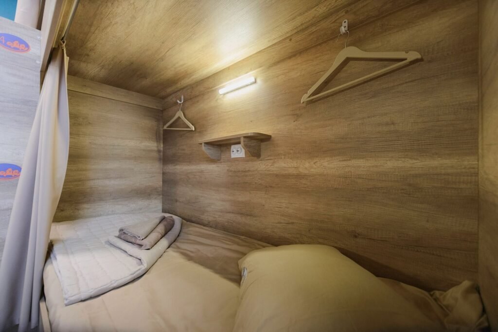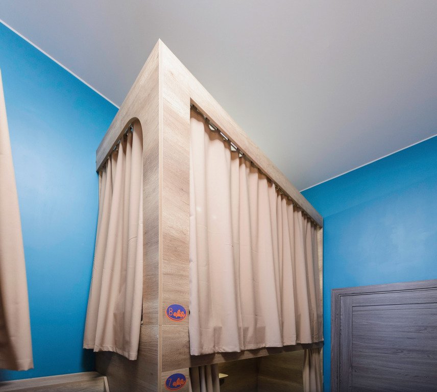 К услугам гостей четыре восьмиместных общих номера и два семейных номера. В общих номерах установлены индивидуальные капсулы с ортопедическими матрасами. Простор и большое количество света в номерах обеспечено высокими потолками 3,45 м и большими окнами.