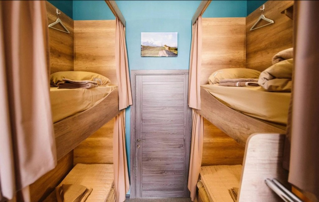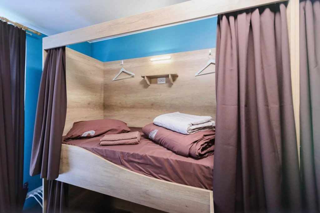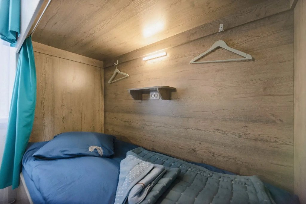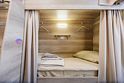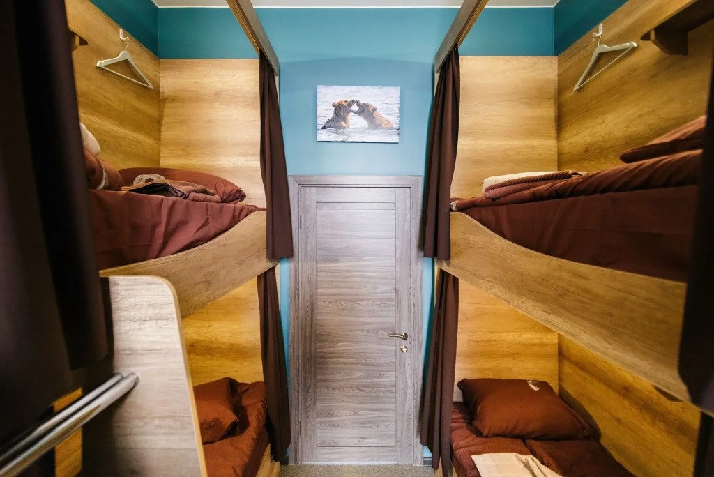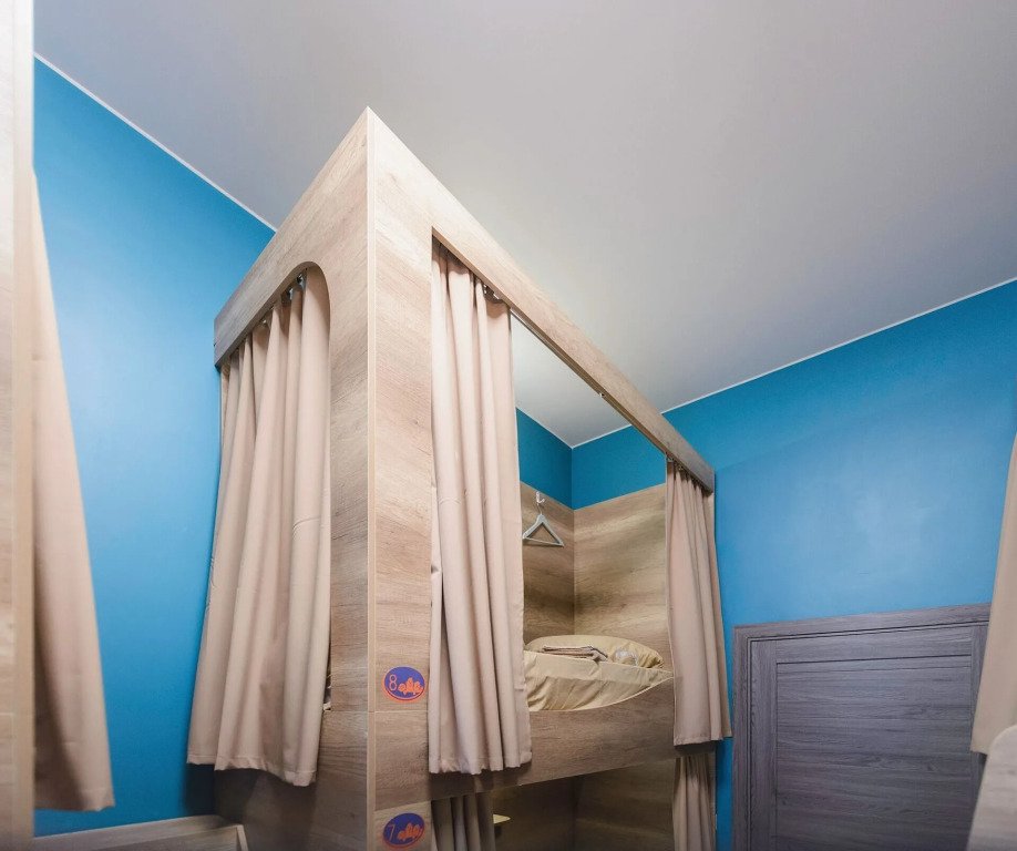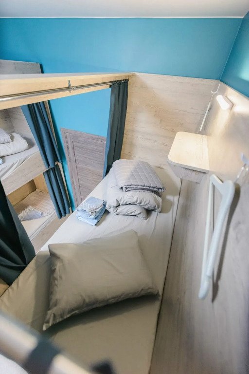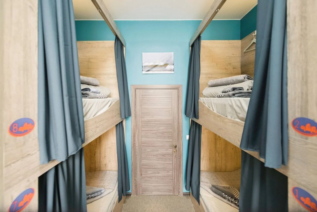 К услугам гостей четыре восьмиместных общих номера и два семейных номера. В общих номерах установлены индивидуальные капсулы с ортопедическими матрасами. Простор и большое количество света в номерах обеспечено высокими потолками 3,45 м и большими окнами.