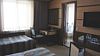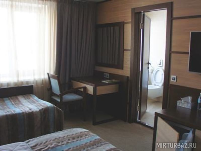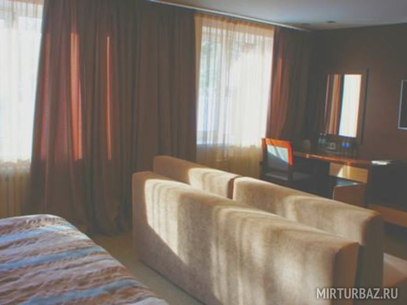 В номере: санузел + душевой бокс; удобные кровати; прикроватная тумба с лампой; журнальный столик со стулом; телевизор со спутниковым телевидением; индивидуальный набор для умывания; тапочки; халаты; полотенца.