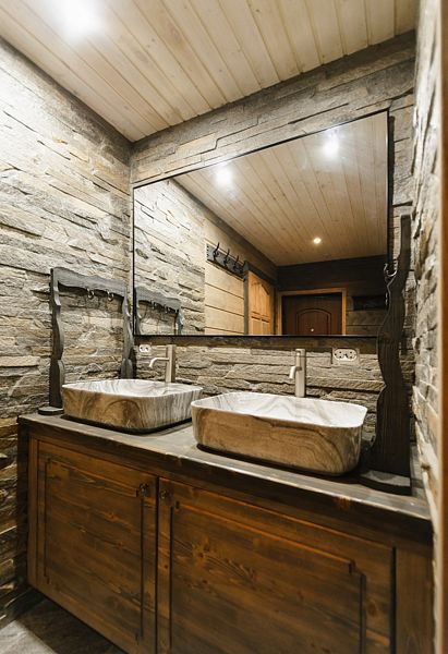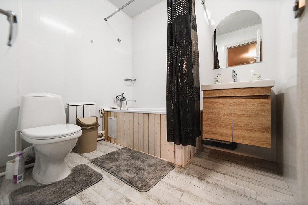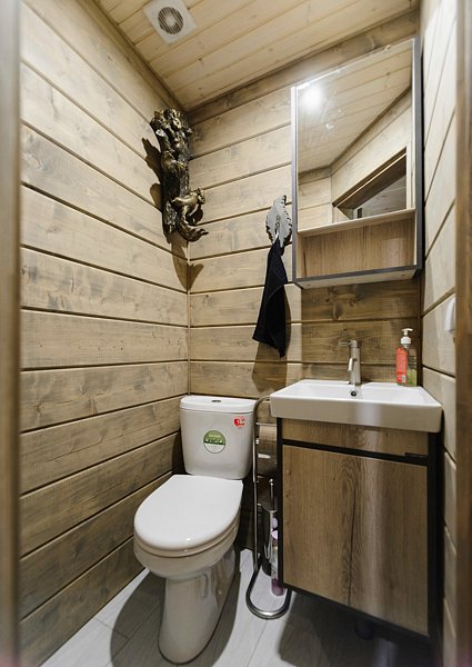 В каждом номере душевая комната. На первом этаже в общей зоне обеденный стол, кухня оборудованная всем необходимым. На втором этаже гостиная с мягкой мебелью. Отдельно можно заказать баню с русской парной.
