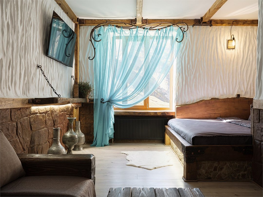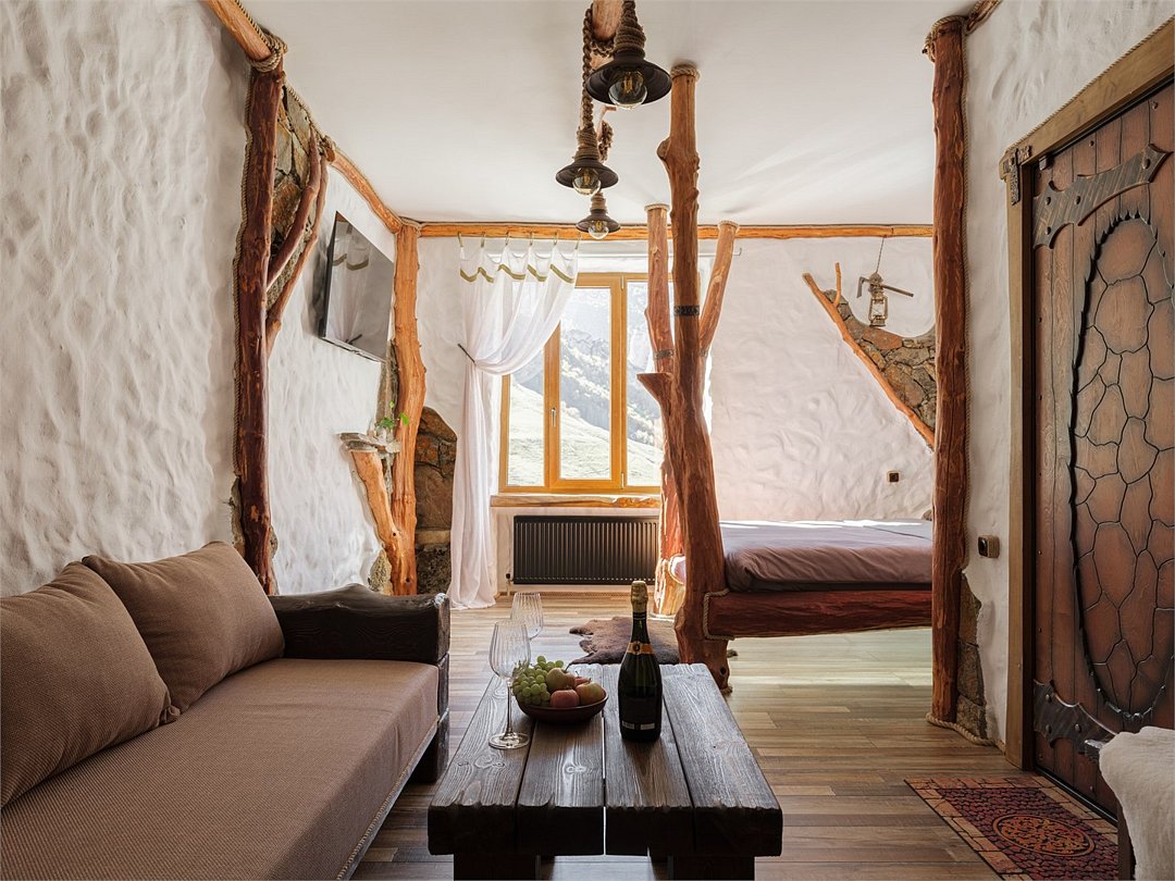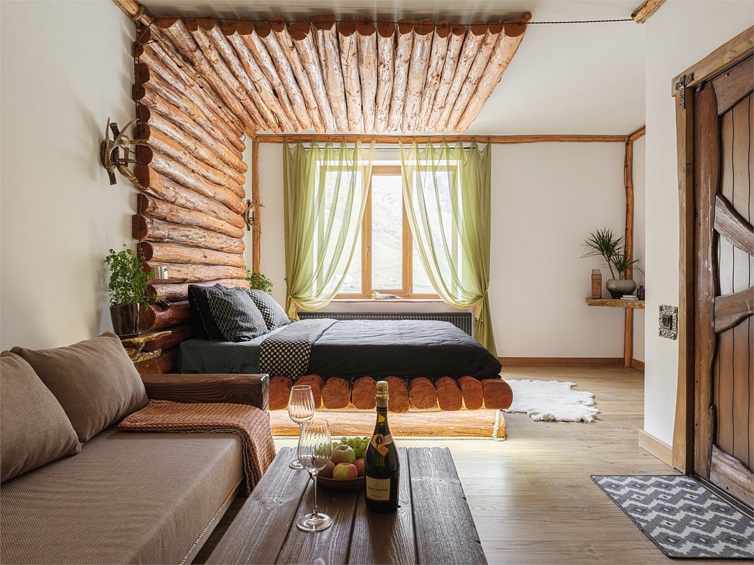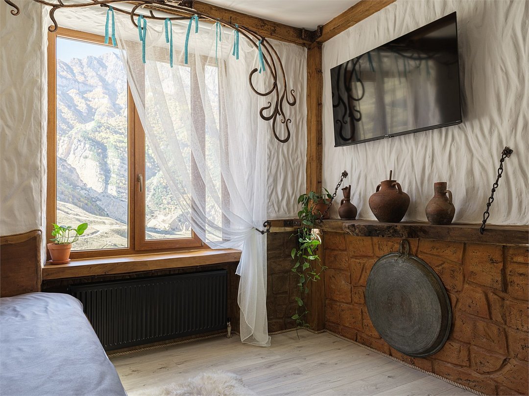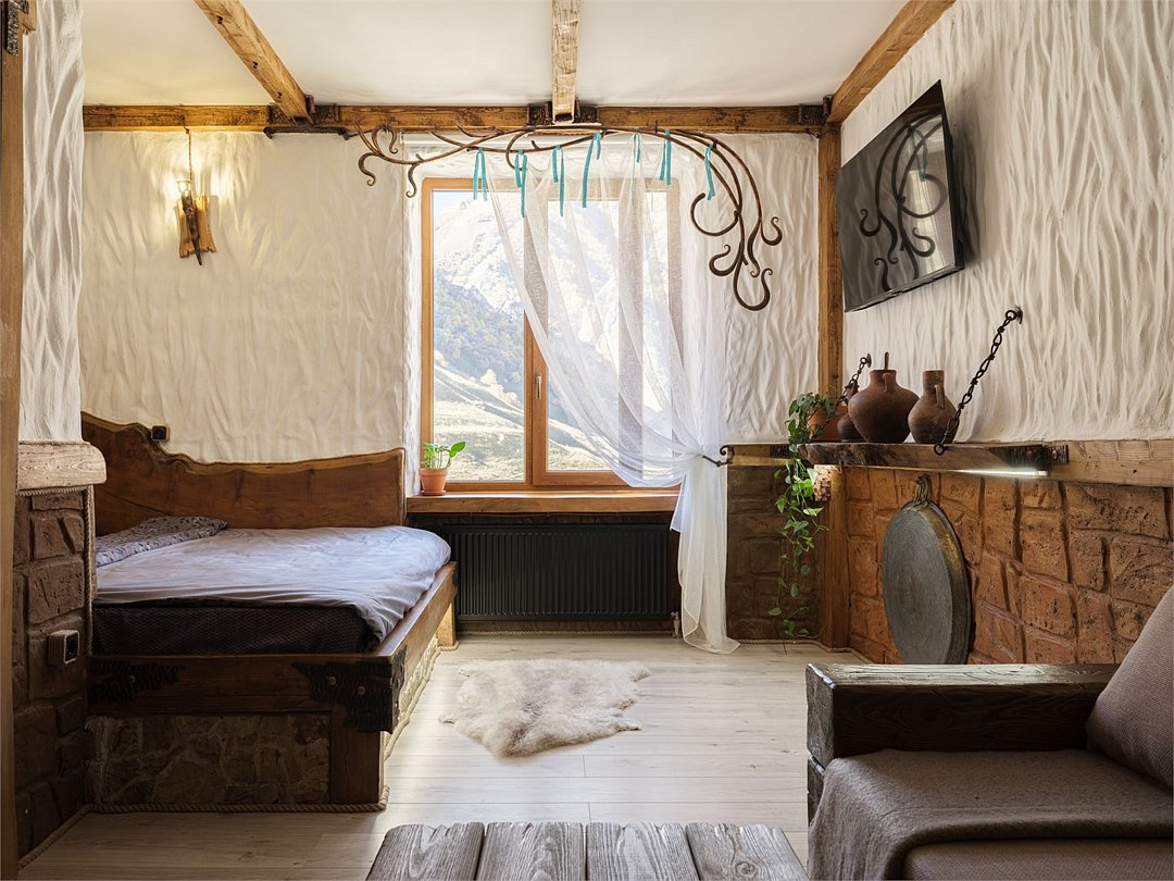 Номер "Булунгу" — это уникальная возможность погрузиться в атмосферу одноимённого высокогорного балкарского села, окружённого величественными Кавказскими горами и пропитанного духом древней истории. Село Булунгу, расположенное на высоте более 1600 метров над уровнем моря, известно своими потрясающими видами, чистым горным воздухом и богатым культурным наследием. История этого места уходит корнями в глубь веков, где горцы веками жили в гармонии с природой, сохраняя традиции предков. Номер "Булунгу" отражает эту неповторимую атмосферу высокогорного уединения и природной красоты. Интерьер выполнен в традиционном балкарском стиле: дерево и камень символизируют прочность и устойчивость, как и сами жители этих гор, а мягкие текстильные элементы добавляют тепла и уюта. Каждый уголок номера рассказывает историю древнего села, передавая чувство покоя и величия окружающего мира. Номер "Булунгу" — это не просто место для отдыха, это погружение в историю и культуру балкарского народа, возможность почувствовать себя частью этого уникального мира, где природа и традиции сливаются в единую гармонию.Услуги и удобства