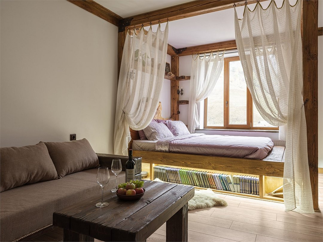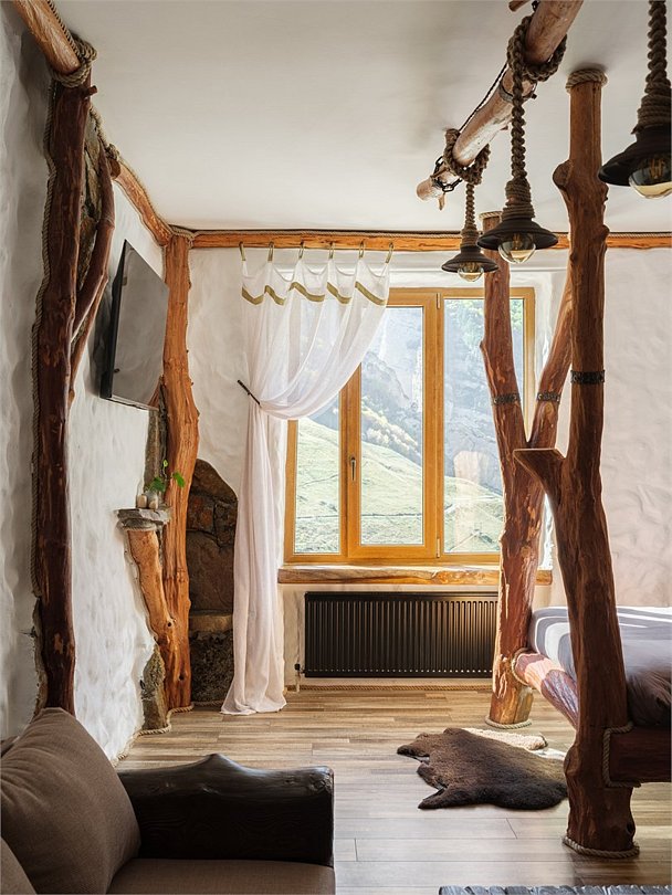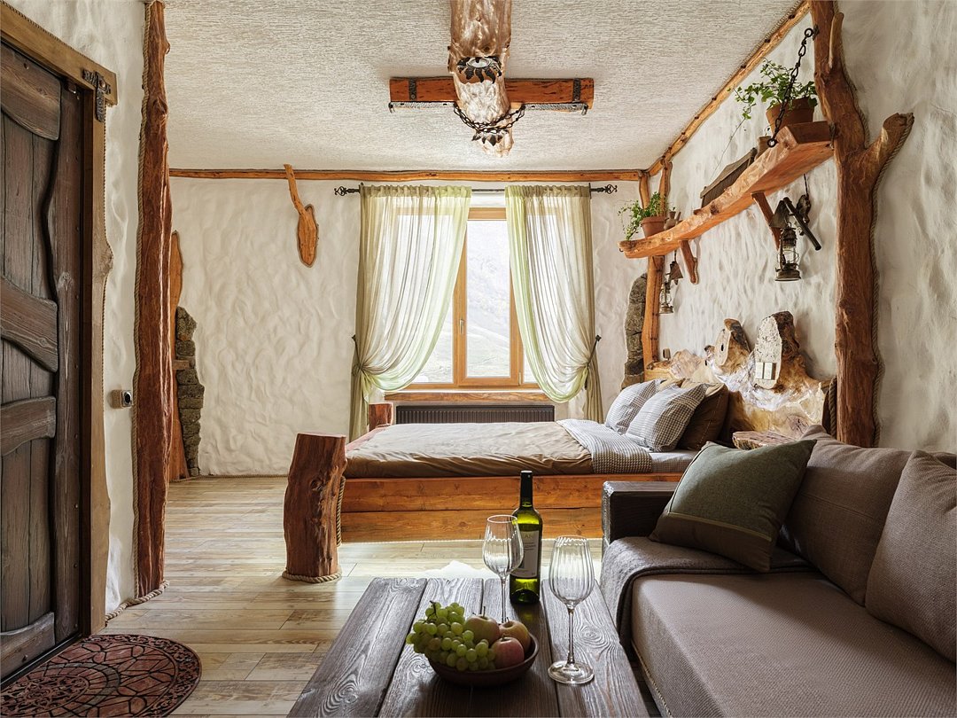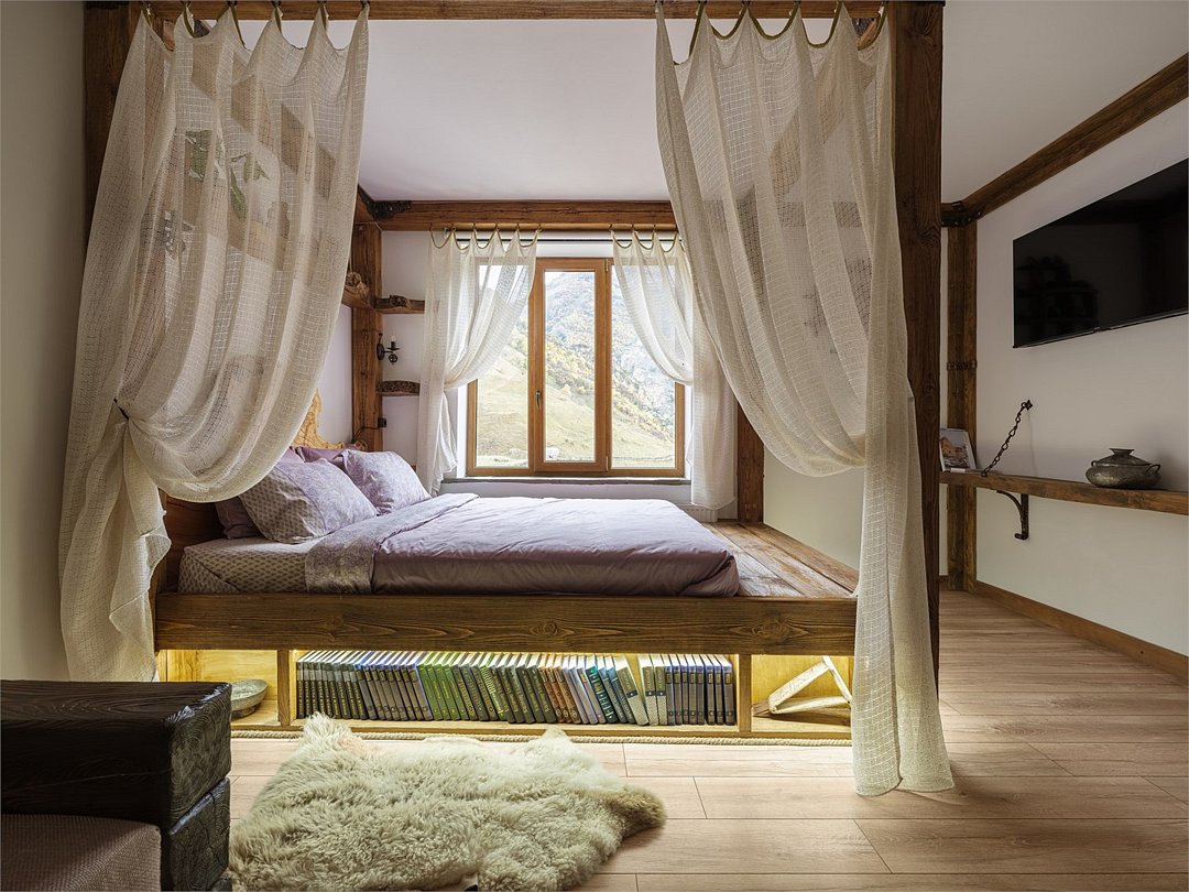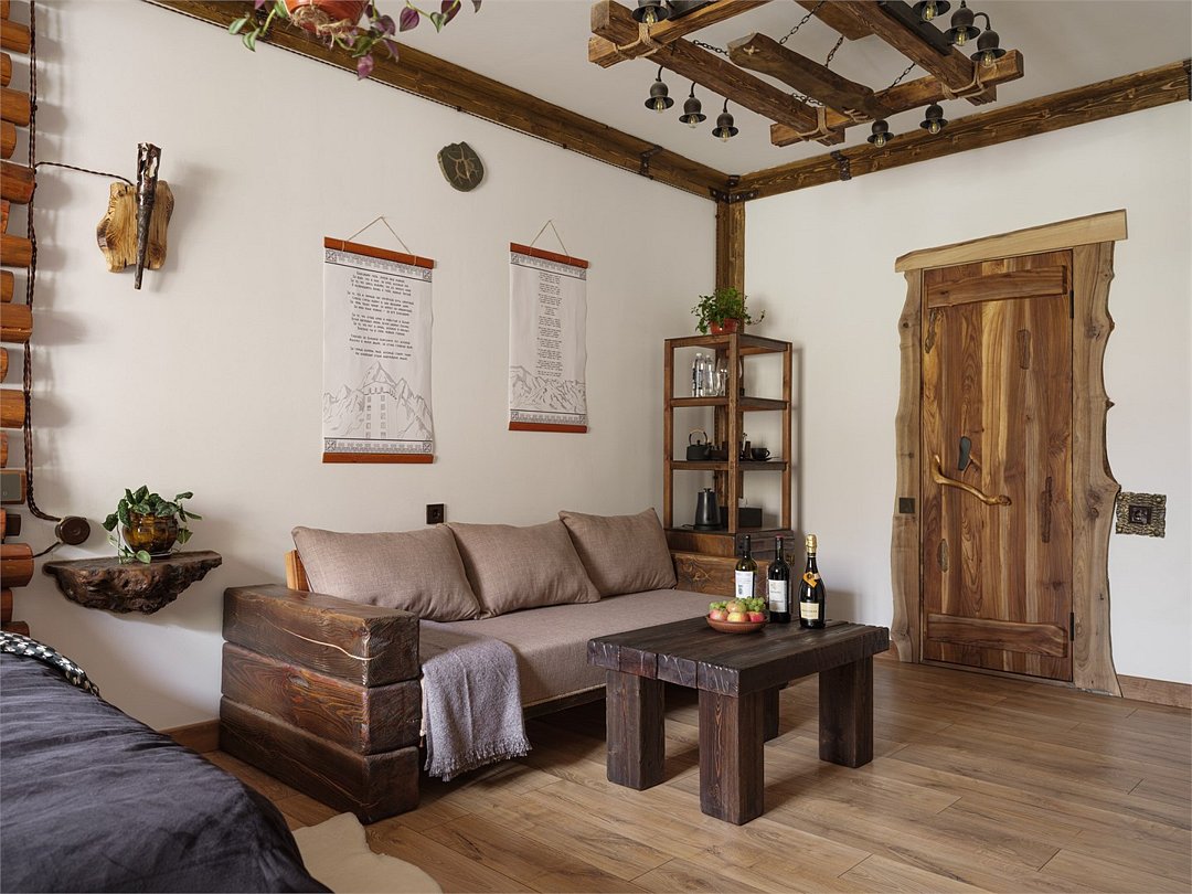 Номер "Булунгу" — это уникальная возможность погрузиться в атмосферу одноимённого высокогорного балкарского села, окружённого величественными Кавказскими горами и пропитанного духом древней истории. Село Булунгу, расположенное на высоте более 1600 метров над уровнем моря, известно своими потрясающими видами, чистым горным воздухом и богатым культурным наследием. История этого места уходит корнями в глубь веков, где горцы веками жили в гармонии с природой, сохраняя традиции предков. Номер "Булунгу" отражает эту неповторимую атмосферу высокогорного уединения и природной красоты. Интерьер выполнен в традиционном балкарском стиле: дерево и камень символизируют прочность и устойчивость, как и сами жители этих гор, а мягкие текстильные элементы добавляют тепла и уюта. Каждый уголок номера рассказывает историю древнего села, передавая чувство покоя и величия окружающего мира. Номер "Булунгу" — это не просто место для отдыха, это погружение в историю и культуру балкарского народа, возможность почувствовать себя частью этого уникального мира, где природа и традиции сливаются в единую гармонию.Услуги и удобства