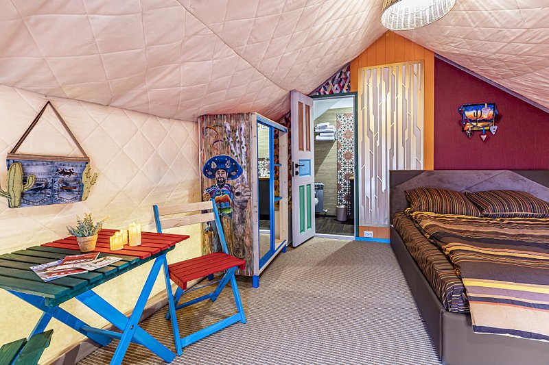 Двухместный номер в стиле «Цыганский барон» — это экстравагантное и увлекательное пространство, которое вдохновлено культурой цыган и романтическими образами цыганской жизни.