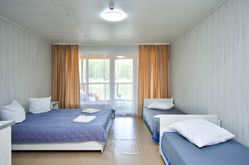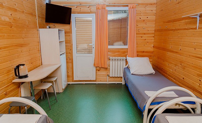 На территории расположены 4 жилых корпуса с двух-, трех- и четырёхместными номерами.