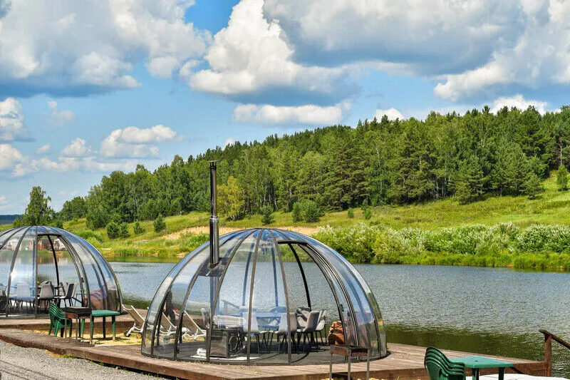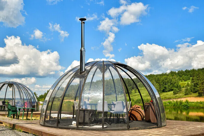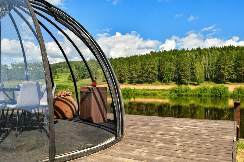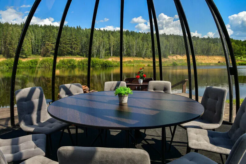 Малый геокупол. Эстетичные, теплые геокупола с панорамным видом на берегу озера. Мероприятия для компании до 18-ти человек. Аренда от трех часов.
