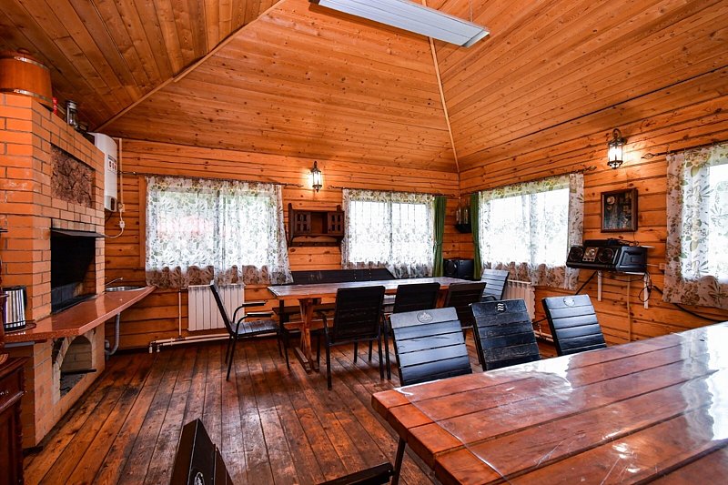 Большая беседка. Брусовая деревянная беседка с прилегающей уличной террасой и мангальной зоной. Аренда от трех часов.