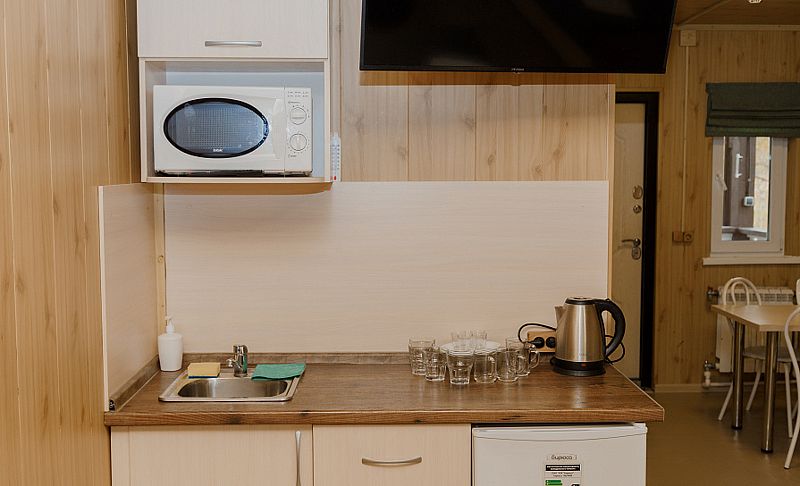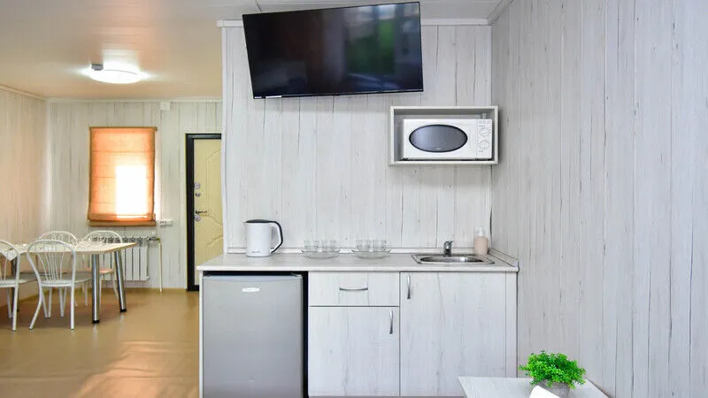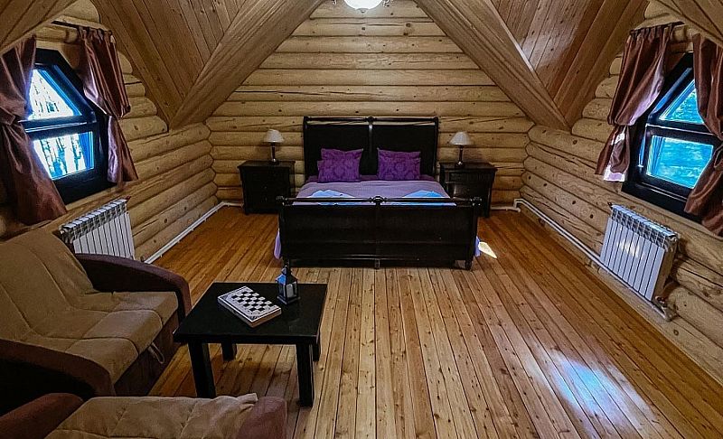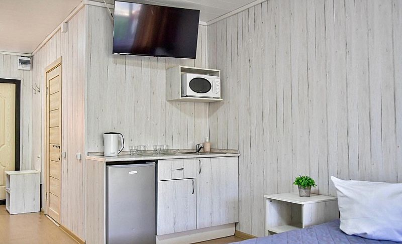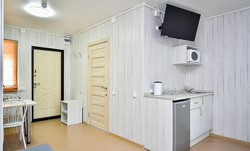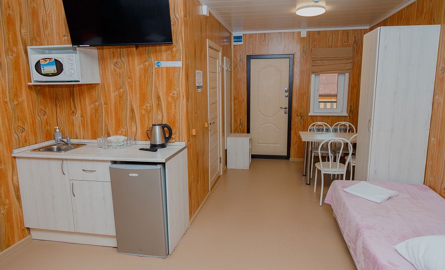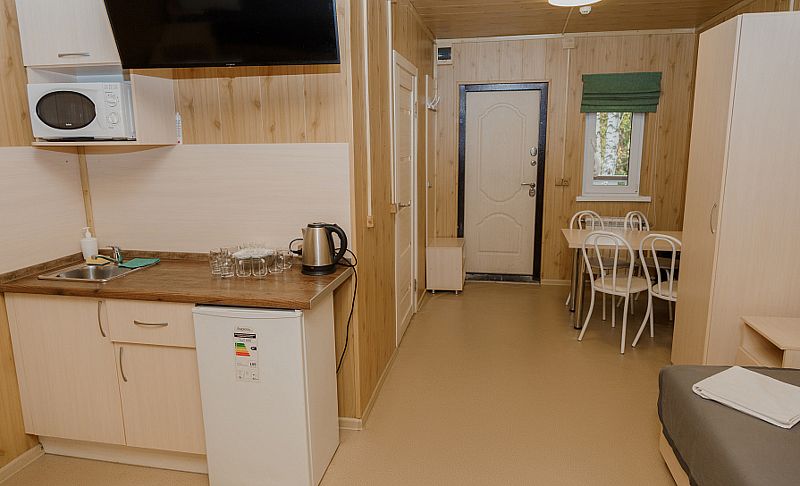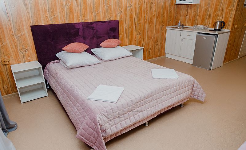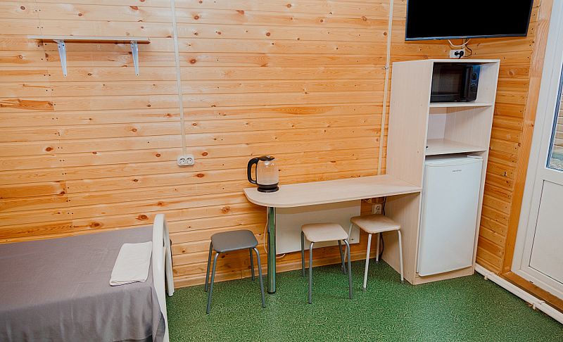 Здесь предлагаются различные варианты размещения. Выберите уютные номера или отдельные деревянные коттеджи, оснащенные всем необходимым для комфортного проживания: индивидуальные санузлы с душевыми, телевизор, электрочайник, кухня с обеденной зоной в коттеджах.
