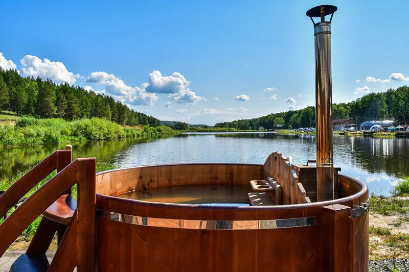Кедровая купель, температура воды по желанию от 20 до 45 градусов. Стоимость:- от 4000 ₽ / первые 2 часа;