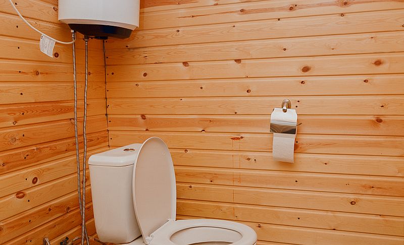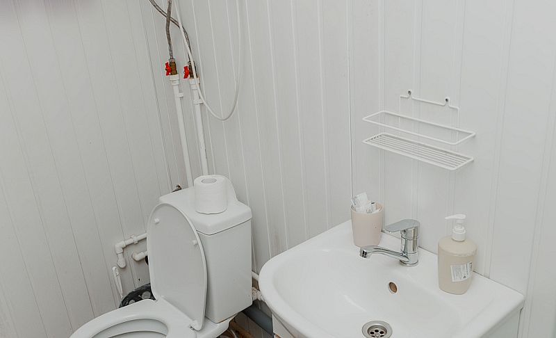 На первом этаже размещен санузел.