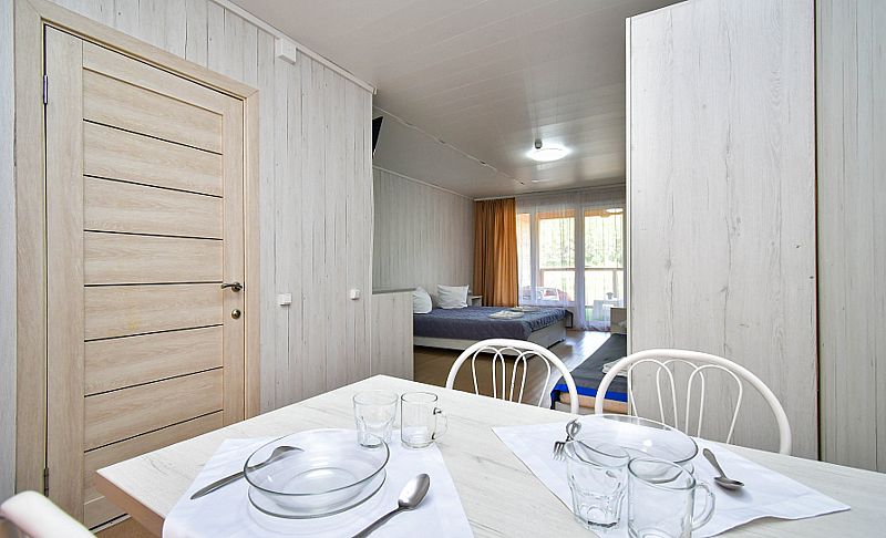 20 номеров категории «люкс» с террасой и видом на озеро или лес.