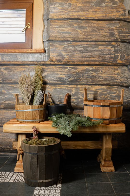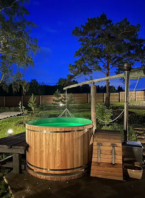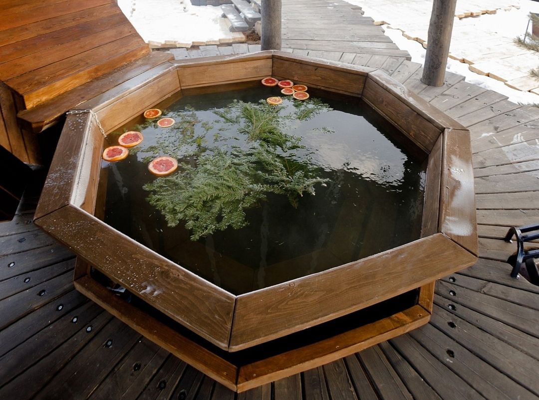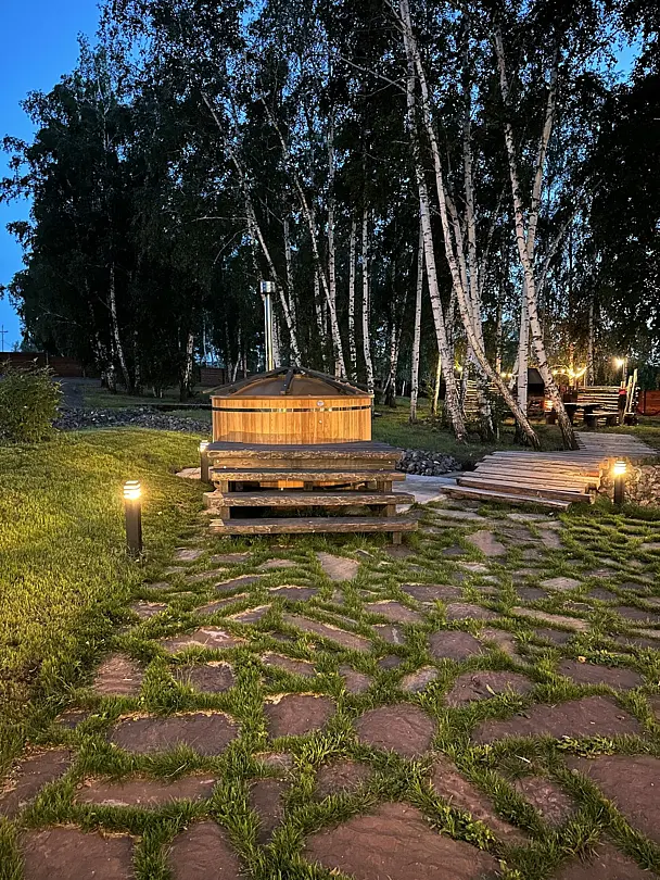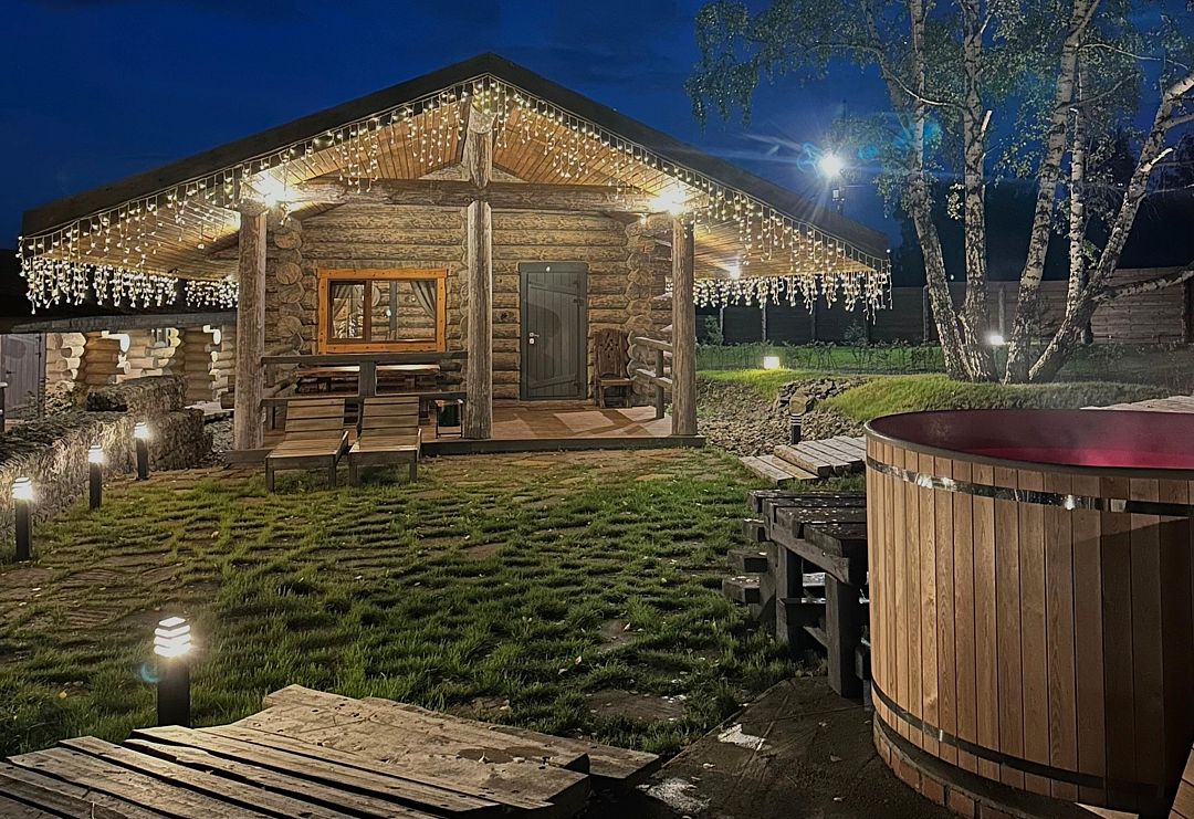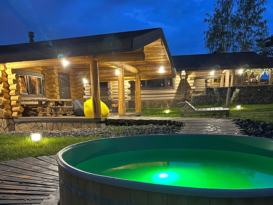 На территории имеется три бани и горячие купели. Банные чаны функционируют круглый год, в них комфортно купаться и зимой, и летом. Также к услугам гостей – пространство для отдыха с гамаками, качелями и костровой зоной.