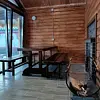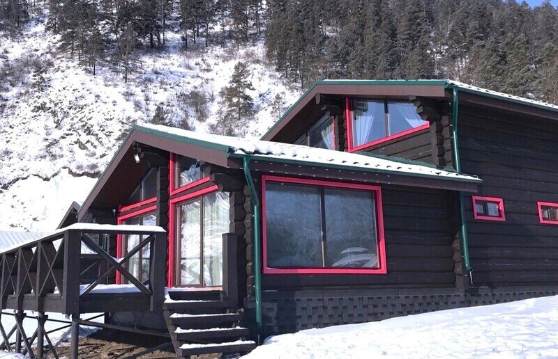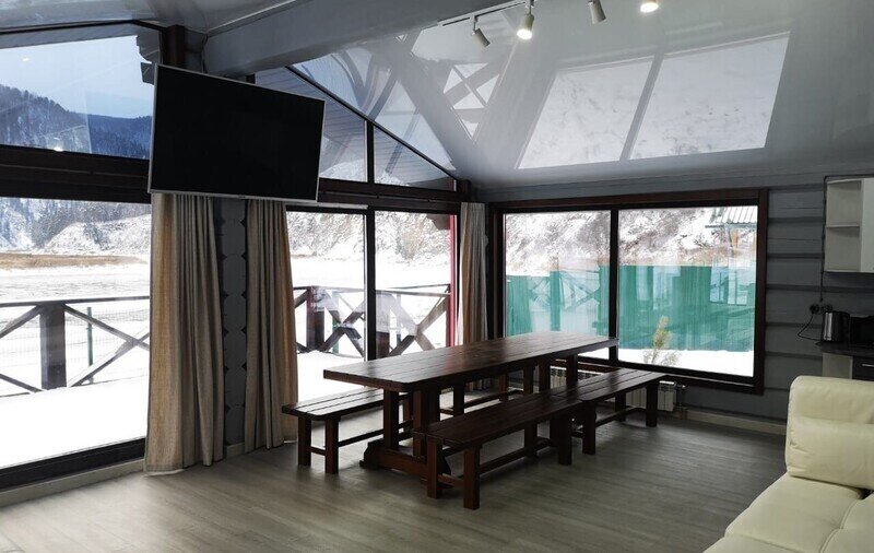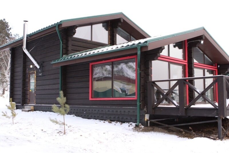 База отдыха представляет собой большой просторный дом норвежской рубки из кедра. На первом этаже - просторная гостиная с панорамными окнами и видом на реку, обеденная и кухонная зоны, мягкая мебель, телевизор. На втором этаже - три отдельные спальни с двуспальными кроватями, в каждой спальне кондиционер и телевизор. Кухня оборудована необходимой посудой и бытовой техникой. Установлена плита, микроволновая печь, холодильник, есть вся необходимая посуда, раковина. В санузле - теплые полы и тропический душ.