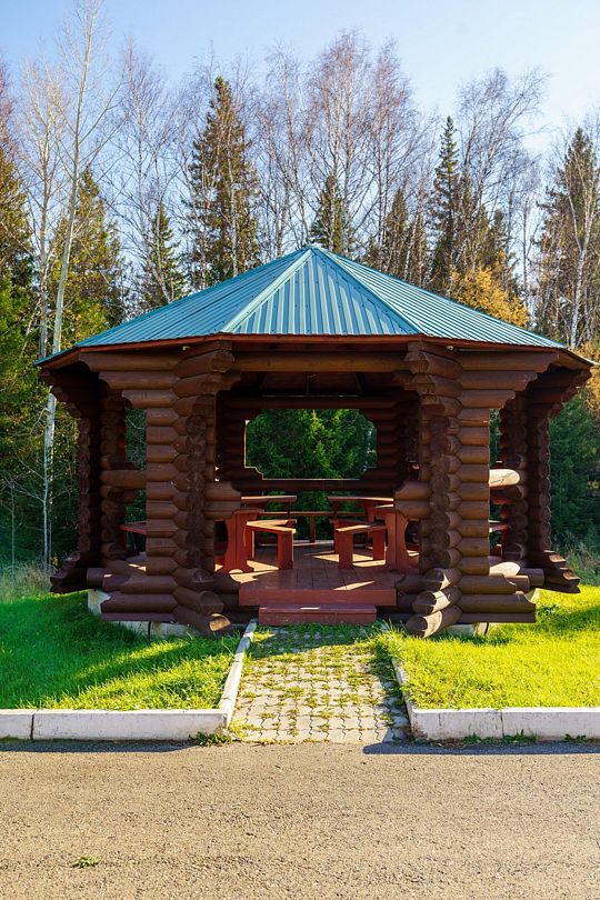 Для гостей обустроены комфортные беседки с видом на лес. Около них оборудованы мангальные площадки. Беседки имеют ночное освещение. Также возможно подключение звуковой аппаратуры.Беседки для больших компаний