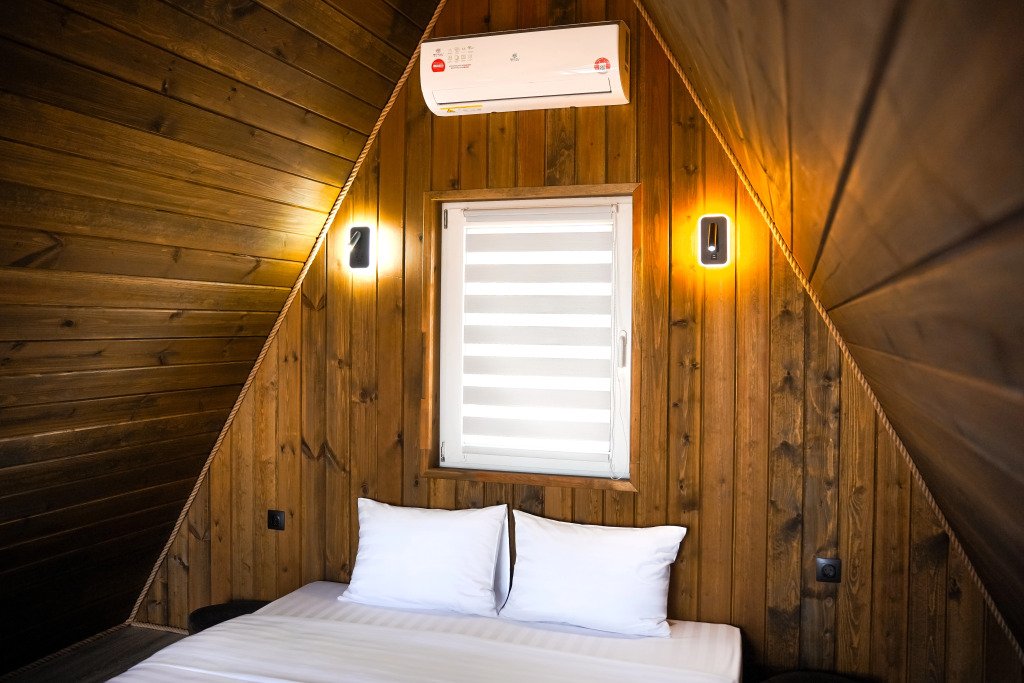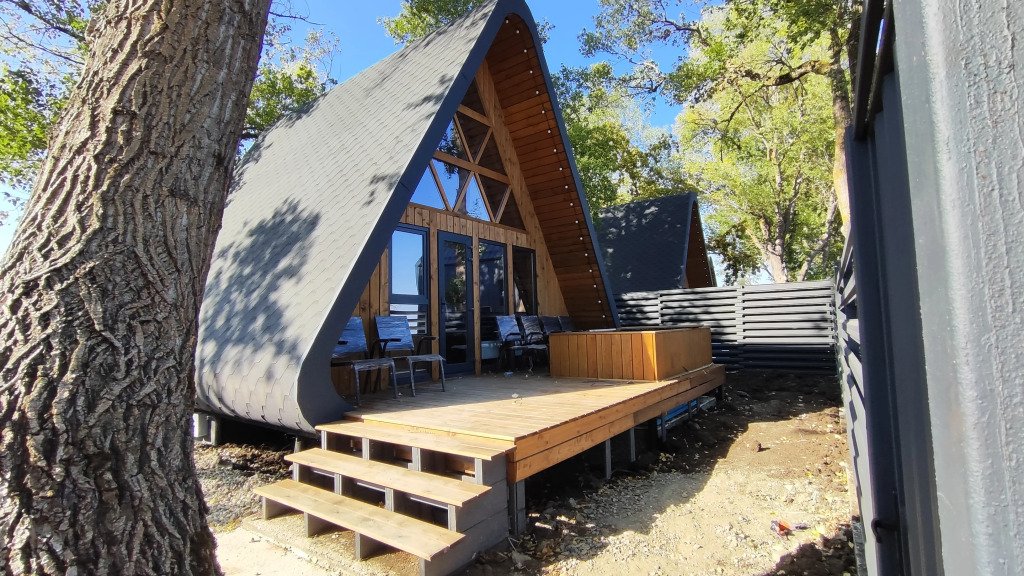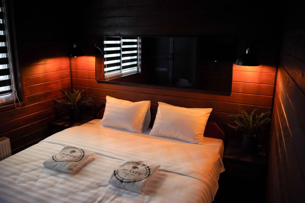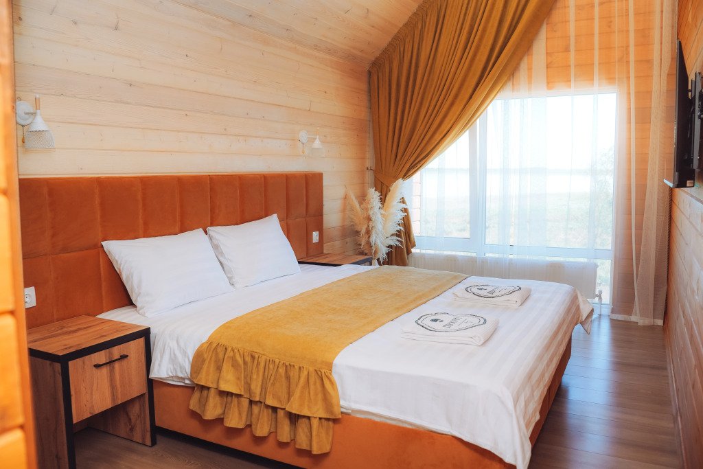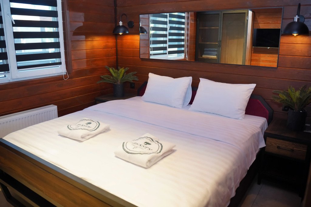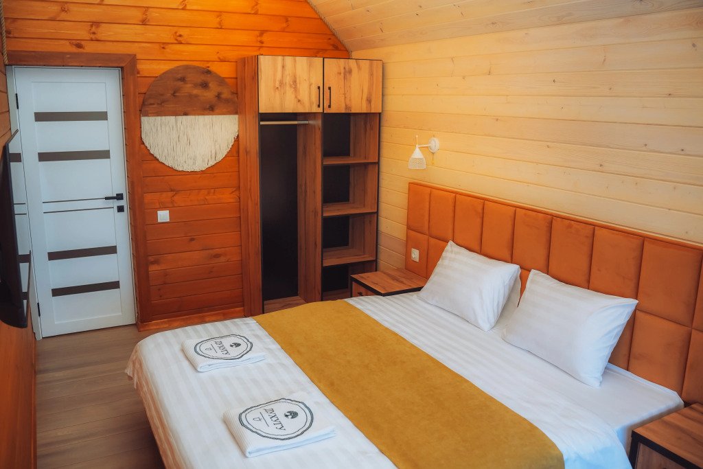 Двухместный коттедж с видом на озеро двуспальная кровать