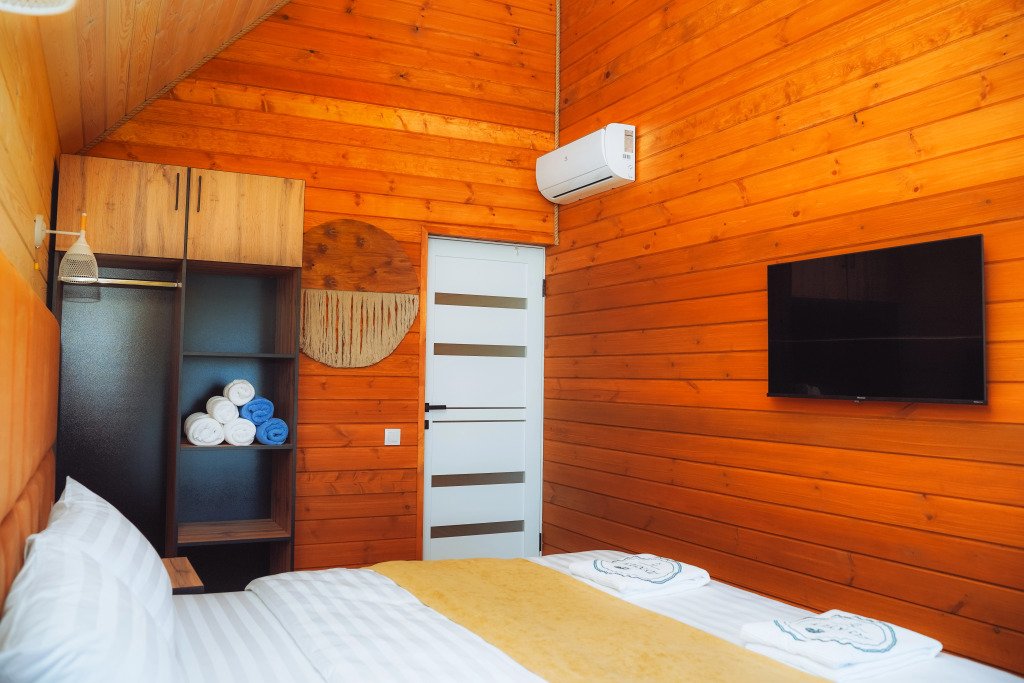 В номере вы найдёте телевизор. Оснащение зависит от выбранной категории номера.
