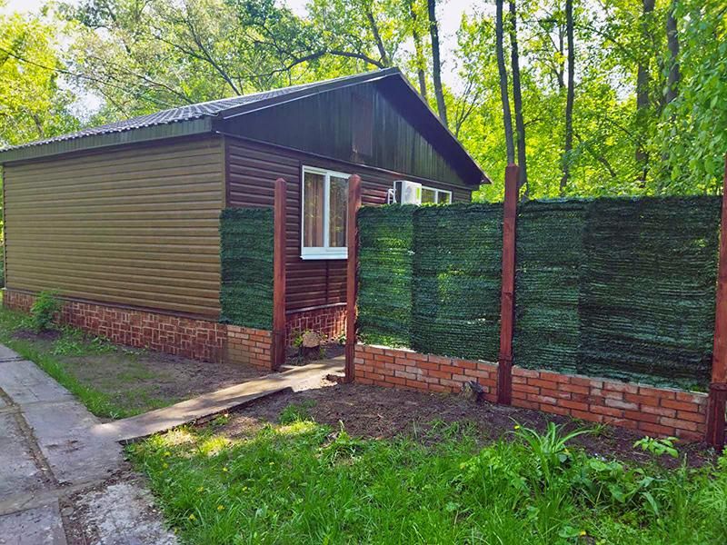 Домик стоит на берегу протоки, с трех сторон огорожен плетеным забором. Около домика во дворе - своя беседка на 6 мест.