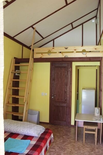 Домики, поделённые на два четырёхместных номера. Каждый номер полностью оборудован: душевая комната, санузел, в номере есть, холодильник, чайник, две двухспальные кровати, постельные и гигиенические принадлежности, мебель.