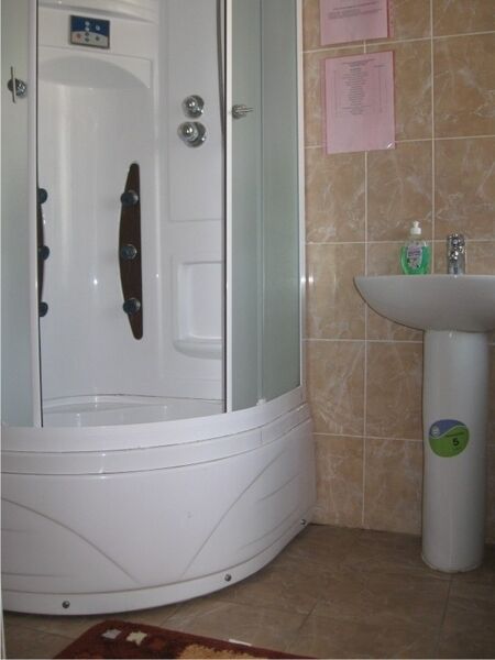 В номере три одноместные кровати, телевизор, тумбочка, кондиционер. Санузел и душ расположен на этаже.