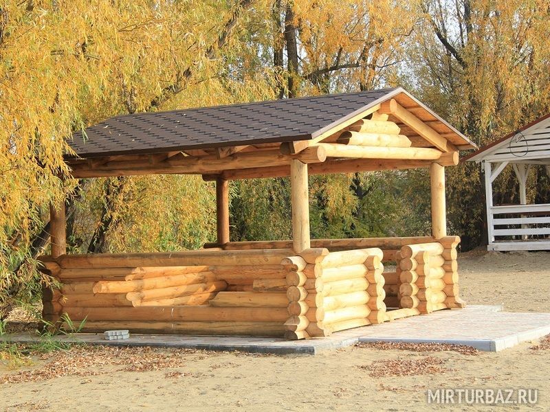 Если Вы собрались провести выходные на природе всей семьей или веселой компанией, то маленькие беседки — это то, что Вам нужно. Сделанные из сруба, помогут Вам окунуться в атмосферу настоящего комфорта. Здесь можно разместиться компанией до десяти человек.