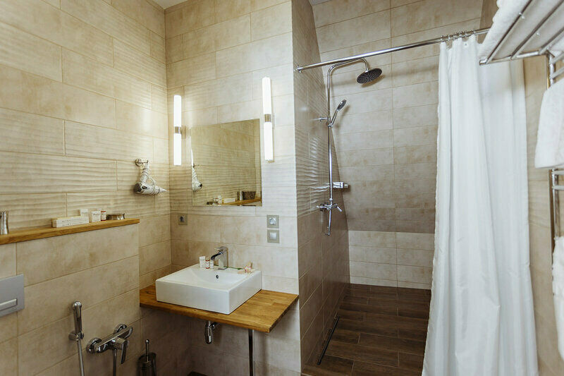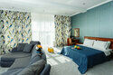 Двуспальная кровать, холодильник, ТВ, кондиционер, Wi-fi, фен, сейф, шкаф купе, санузел, душ, средства гигиены.