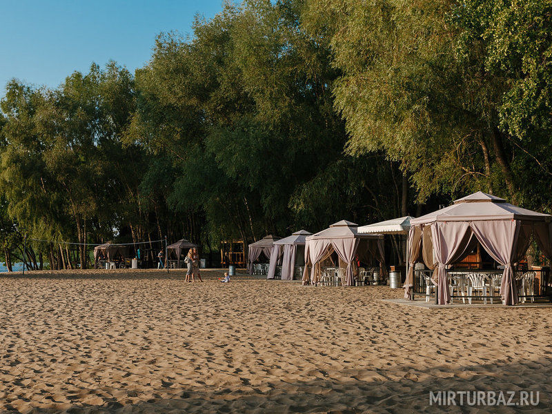 Инфраструктура: лежаки, зонтики, шезлонгиПесчаный пляж