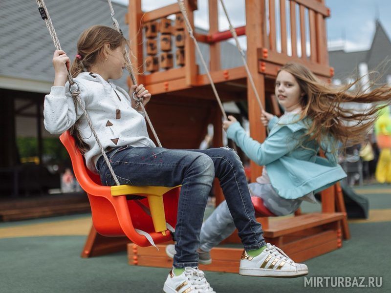 Перголы и лежаки для родителей, "лягушатник", горка и веселые аниматоры для детей - детская зона расположена рядом с VIP-зоной.