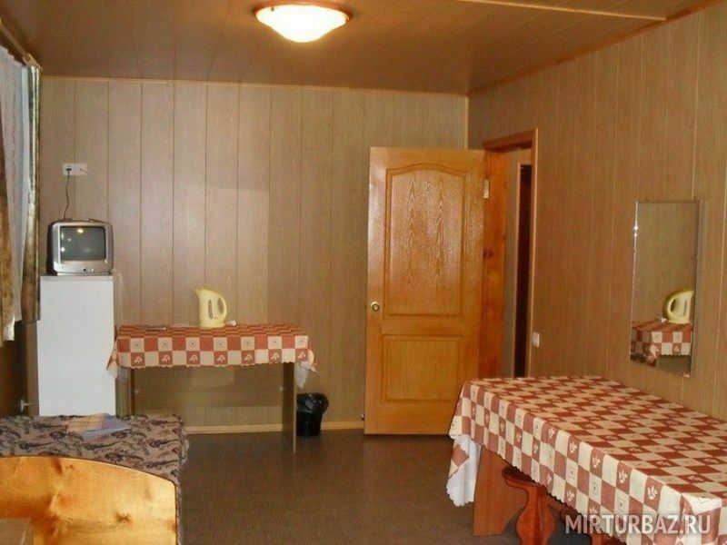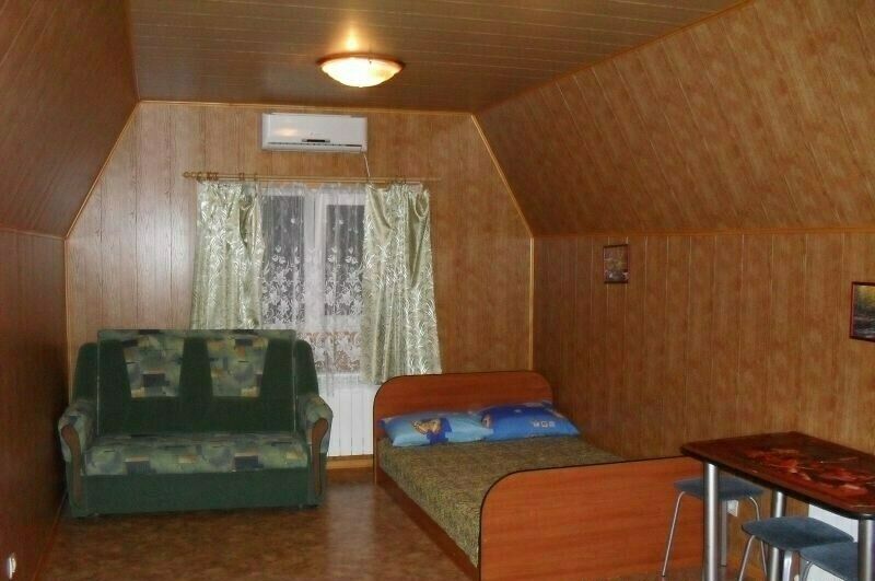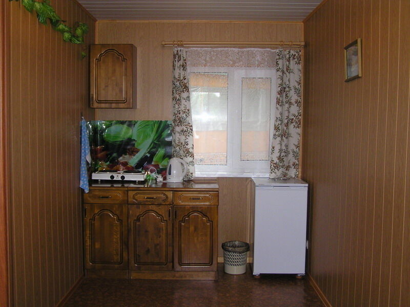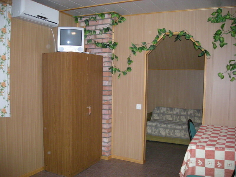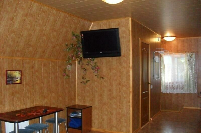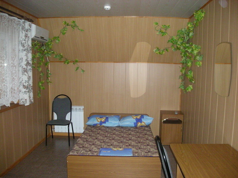 Своя кухня, в которой всегда можно приготовить еду, однокомнатный номер с двухспальной кроватью и телевизором, и однокомнатный номер с двумя односпальными кроватями. Рядом с домиком беседка и мангал для приятного отдыха на природе.