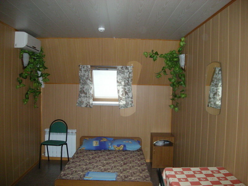 Однокомнатный номер. В номере: двухспальная кровать, телевизор, холодильник, кондиционер, душ и санузел на три номера.