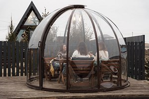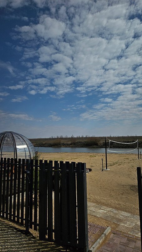 На территории глэмпинга вы сможете попариться в баньке на дровах с панорамным окном в парилке или расслабиться в горячей купели на террасе. На пляже установлена волейбольная сетка и беседка в форме купола с прекрасным видом на живописную речку. Есть прокат сап-досок.