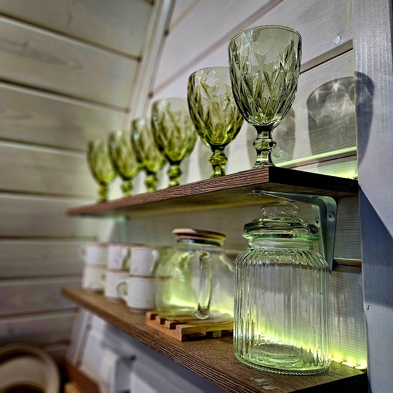 - посуда и столовые приборы для красивой сервировки стола (тарелки плоские и глубокие, бокалы, фужеры, чайные чашки, рюмки);