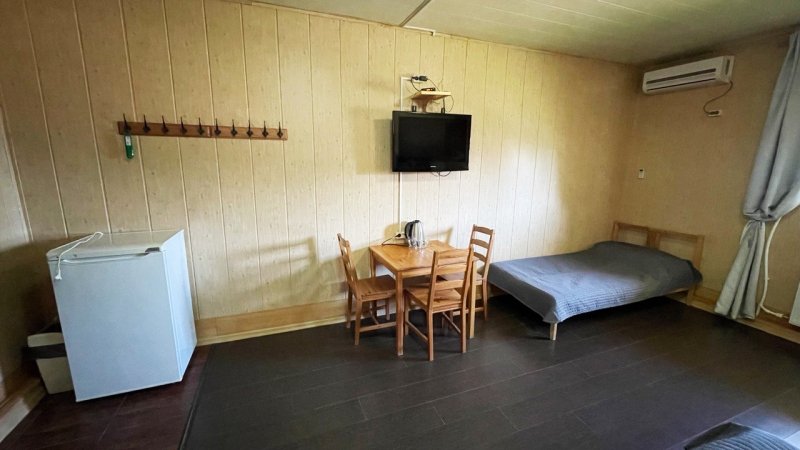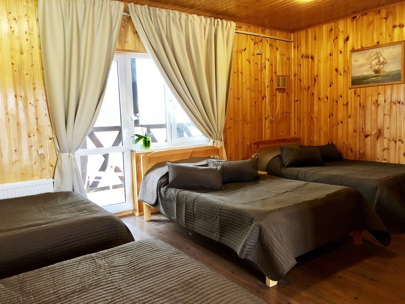 Номера отличаются высоким уровнем комфорта. Транспортная доступность дает возможность добраться до территории из Москвы всего за 12-14 часов. Постояльцы останавливаются в номерах уровня эконом и полулюкс на 2-4 человек. Любители уединения выбирают отдельно стоящий коттедж. Организовано питание в собственном ресторане.