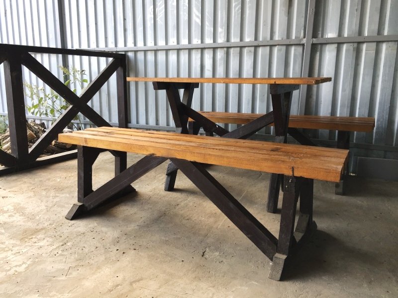 Веранда (стол+лавки) под навесом.