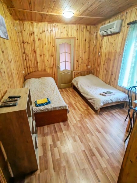 Номер «Эконом» на 2 гостя оснащен комфортным санузлом (2 душевые, туалет, умывальник, фен), совмещенным с номером «Эконом» на 3 гостя. Санузел расположен в холле между двумя номерами. Вам не нужно выходить на улицу для того, чтобы попасть в душ или туалет.