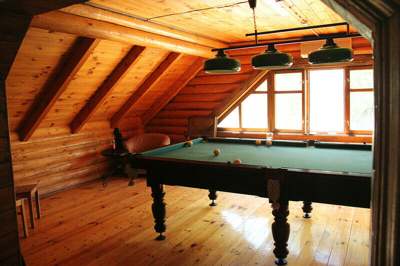 На территории работает бильярдная, есть место для игры в настольный теннис. В распоряжении гостей шахматы, нарды. Есть отдельные зоны для копчения, соления и вяления рыбы. Осуществляется прокат снастей и лодок. За каждым номером закреплена моторная лодка и опытный егерь. Оборудована автомобильная парковка, отлично ловит сигнал Wi-Fi. Отдохнуть после насыщенного дня можно в теплой бане.