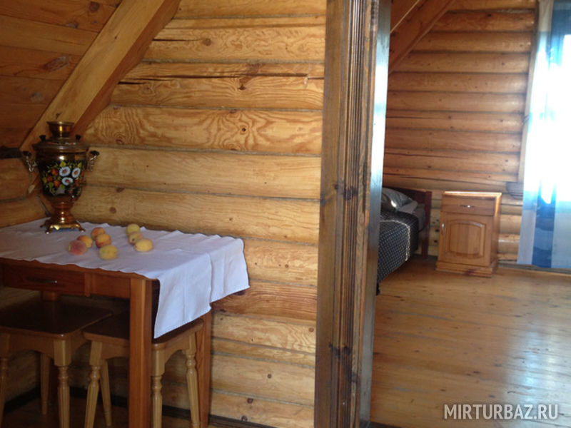 Комфортабельные двухэтажные коттеджи из оцилиндрованного бревна. Каждый этаж коттеджа (сруб) — отдельный номер, с отдельным входом и верандой.