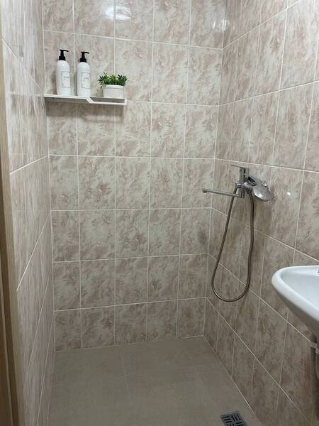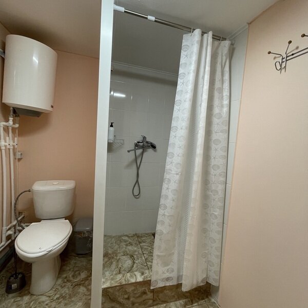 Душ, туалет, холодильник, морозильная камера, телевизор.