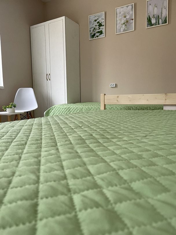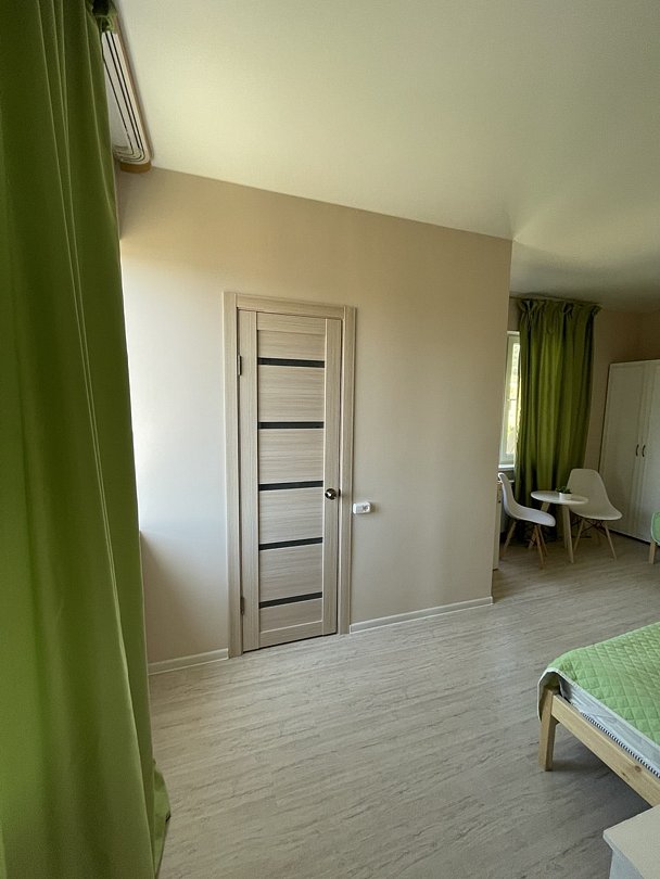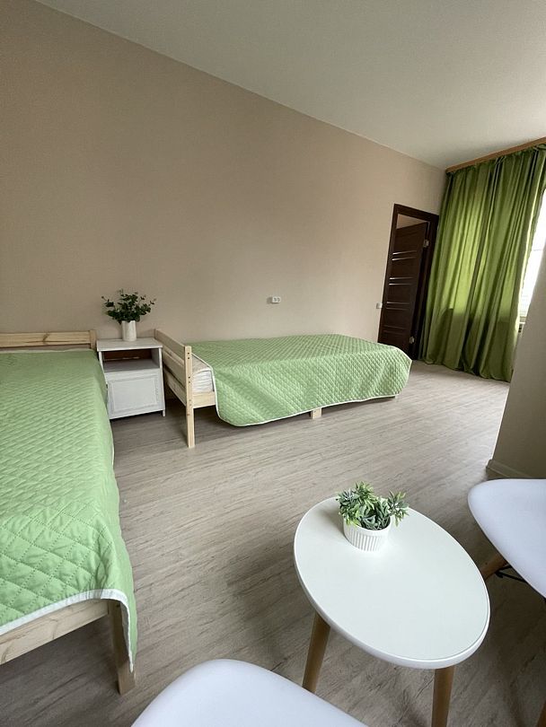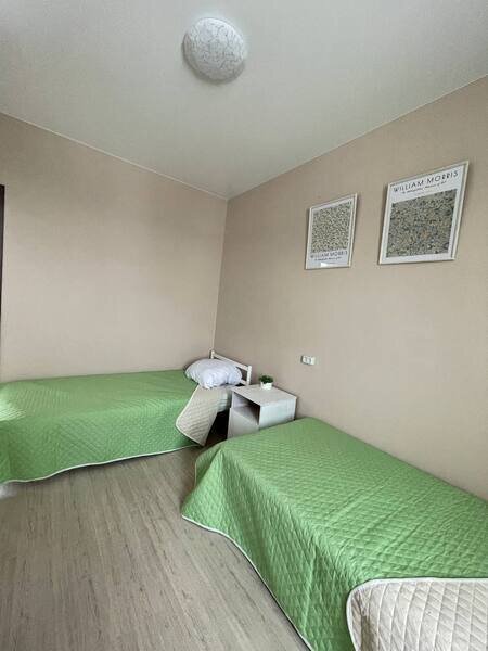 С собственной кухней. Две раздельные спальни по 4 человека. Максимальное размещение 8 человек.