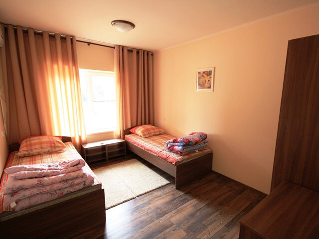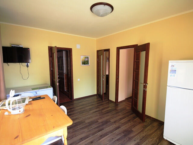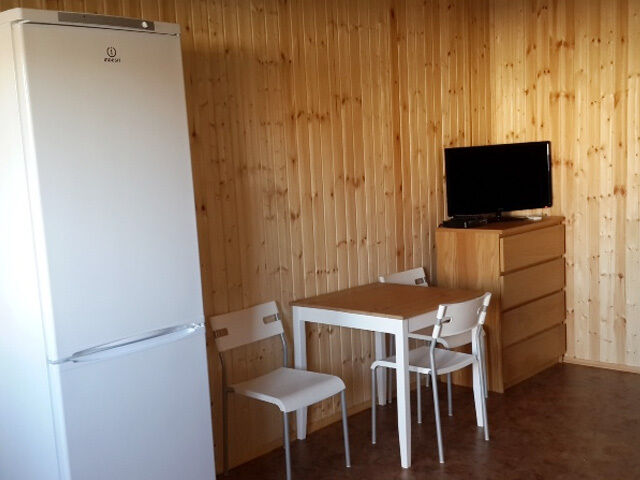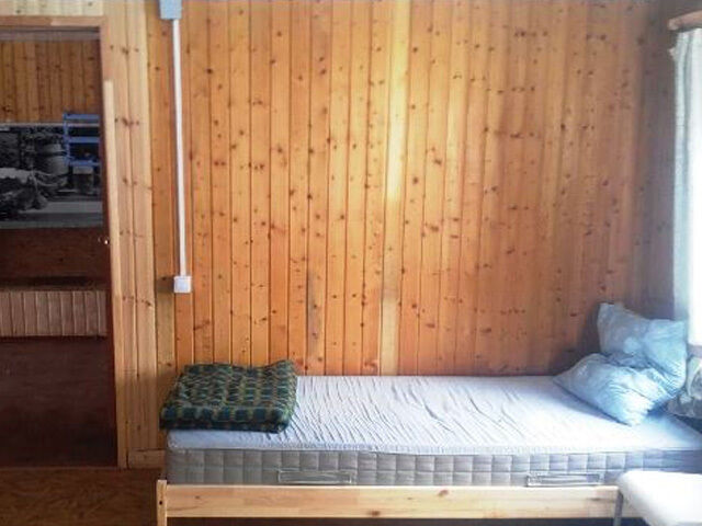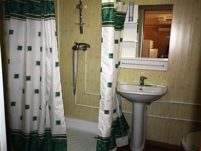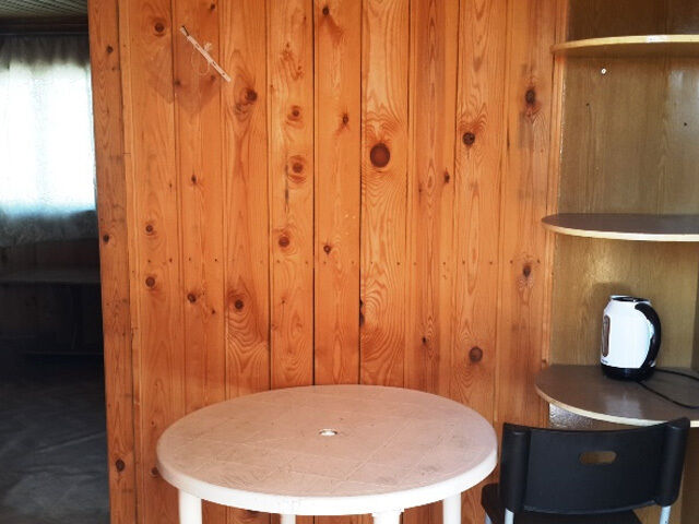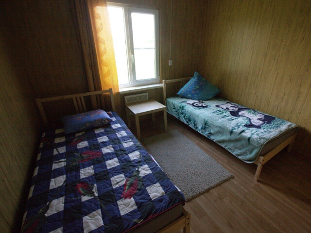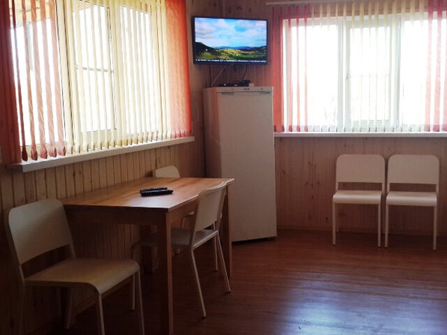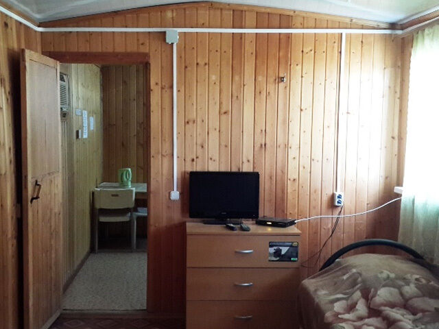 Одна комната с прихожей, три кровати, туалет с умывальником, душ, кондиционер и телевизор, морозильный ларь.
