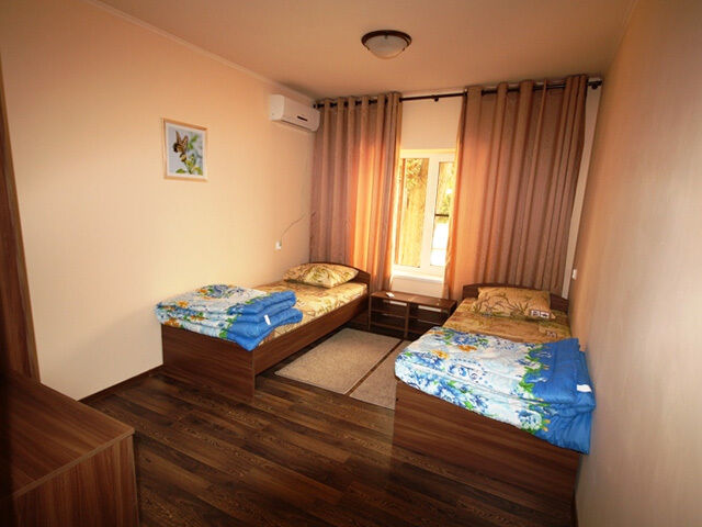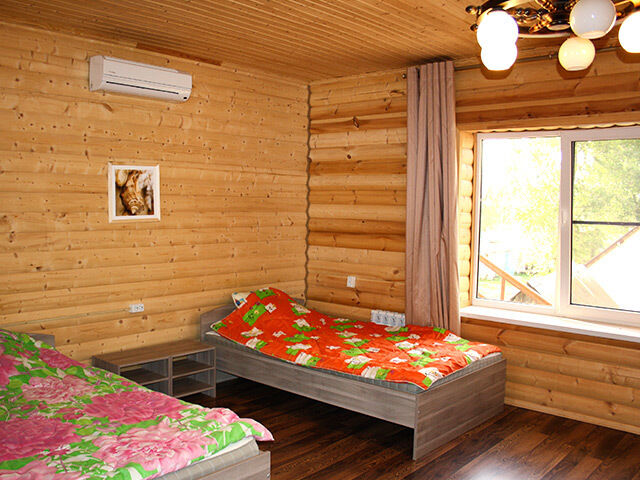 Две комнаты по две кровати в каждой, три сплит-системы на дом, все удобства плюс морозильный ларь.