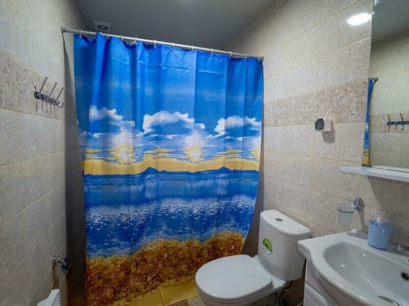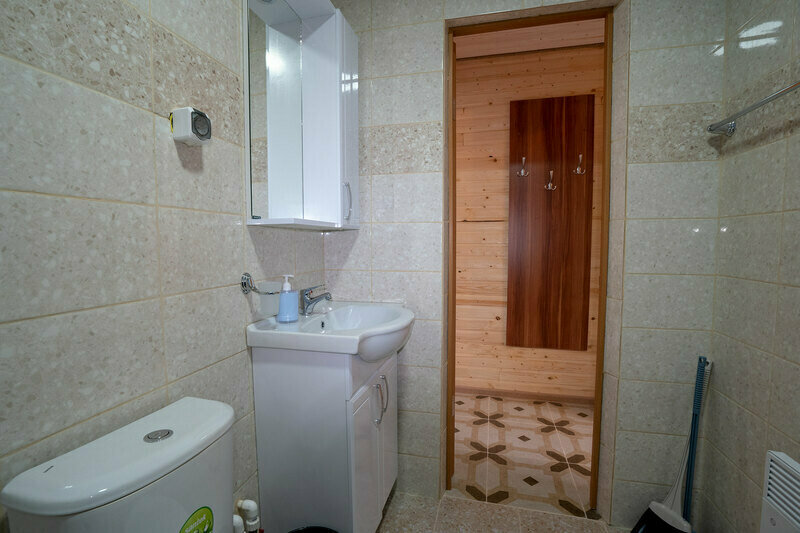 В санузле: душ, полотенца для рук, туалетная бумага, мыло, освежитель воздуха. В беседке с москитной сеткой: двухкамерный холодильник, стол, скамейка для приятного отдыха.