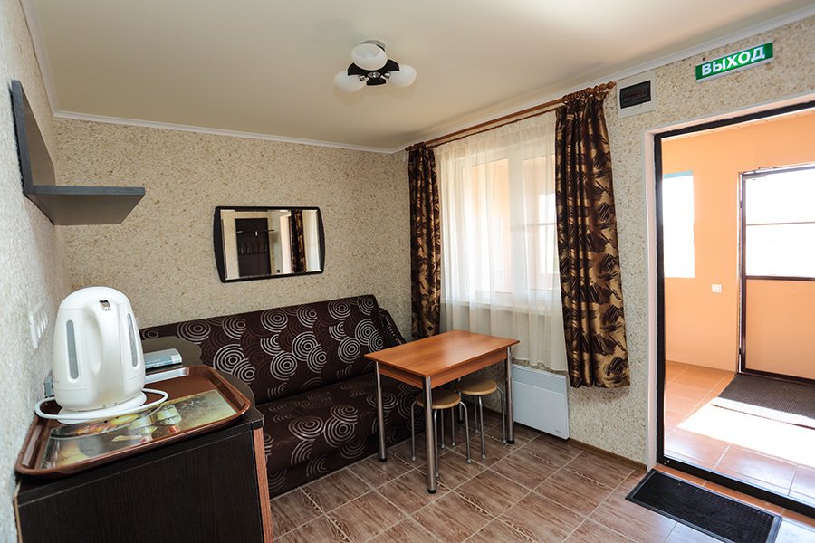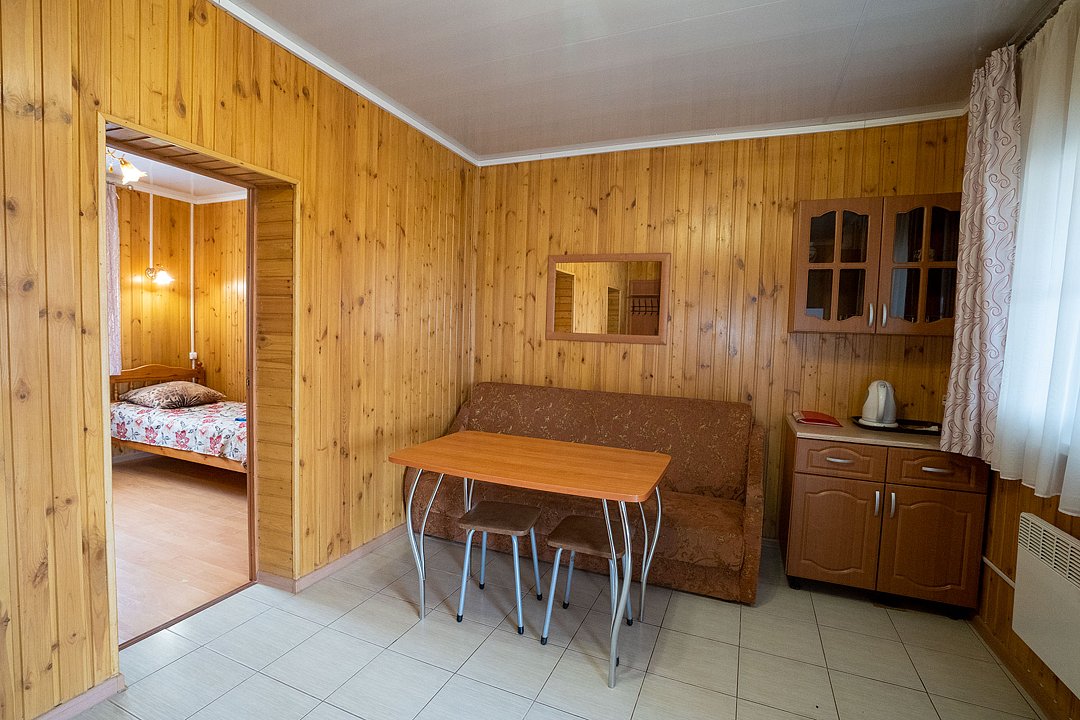 2-х местный номер Рассчитан для комфортного размещения двух-трех человек. Две комнаты. Отдельный вход с улицы.