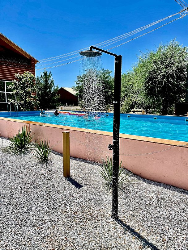 Около главного корпуса, на территории комплекса «Золотые Барханы», расположена зона отдыха с открытым бассейном и шезлонгами. Бассейн работает с июля по сентябрь.