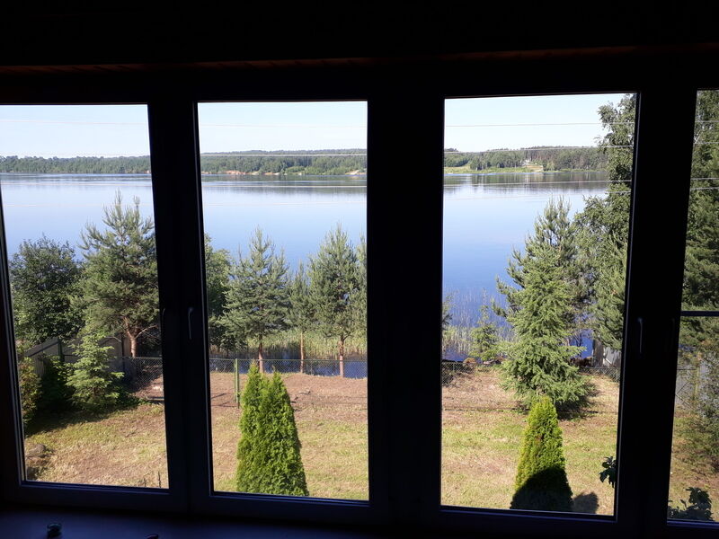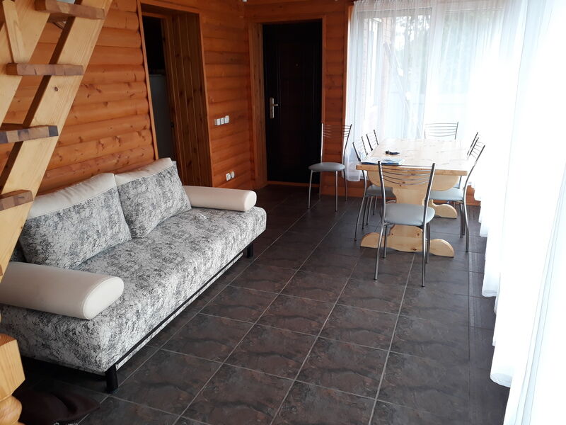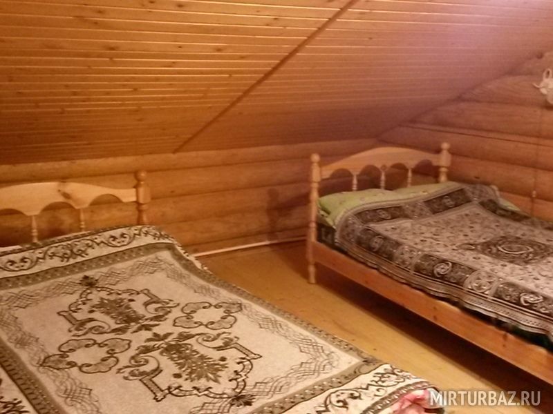 В доме на первом этаже большой зал 64 кв. м, кухня с электроплитой, микроволновой печью, электрочайником, холодильником, санузел с душевой кабиной, одна спальня с двумя двухместными кроватями. На втором этаже четыре спальни с двумя двухместными кроватями в каждой комнате, санузел.