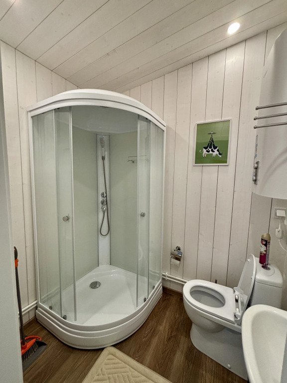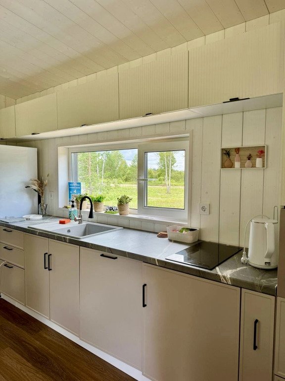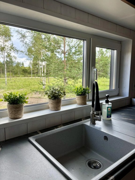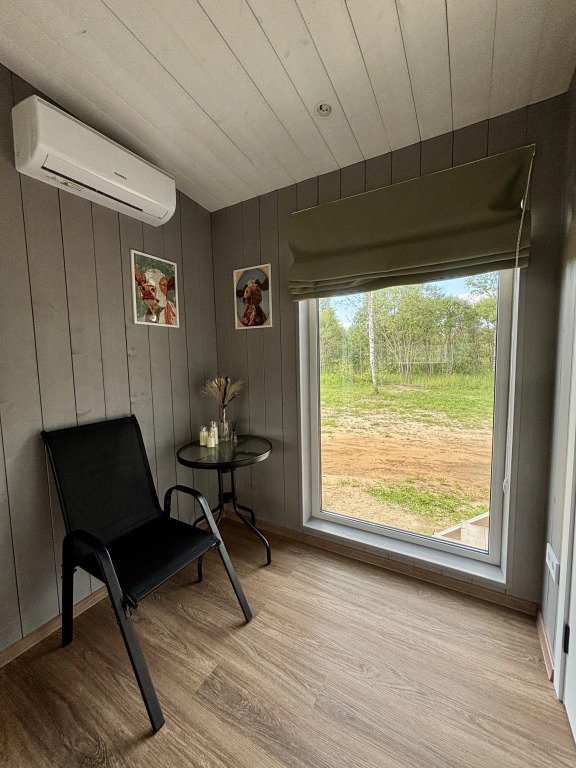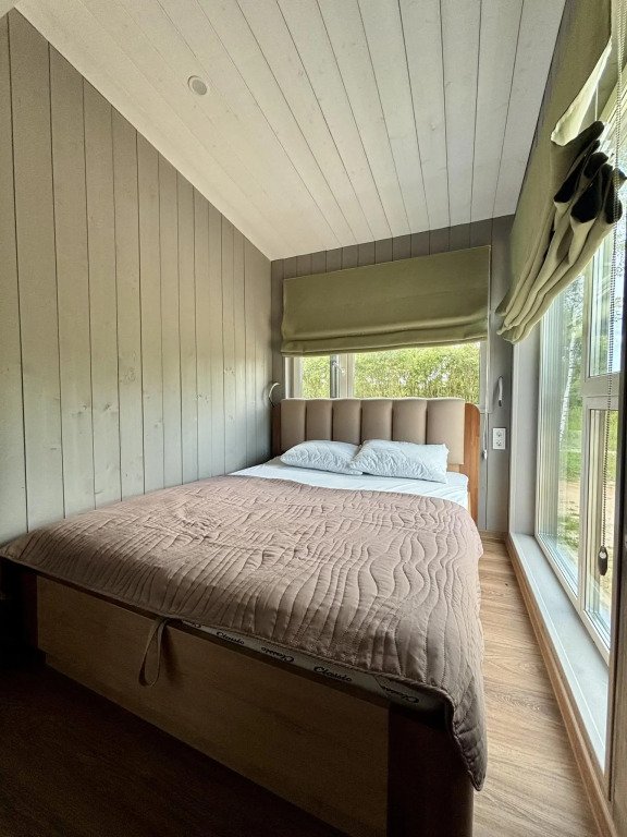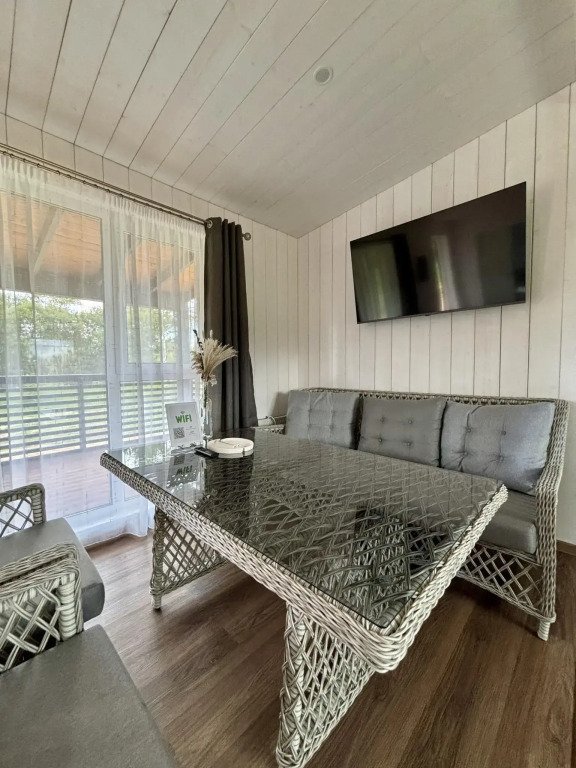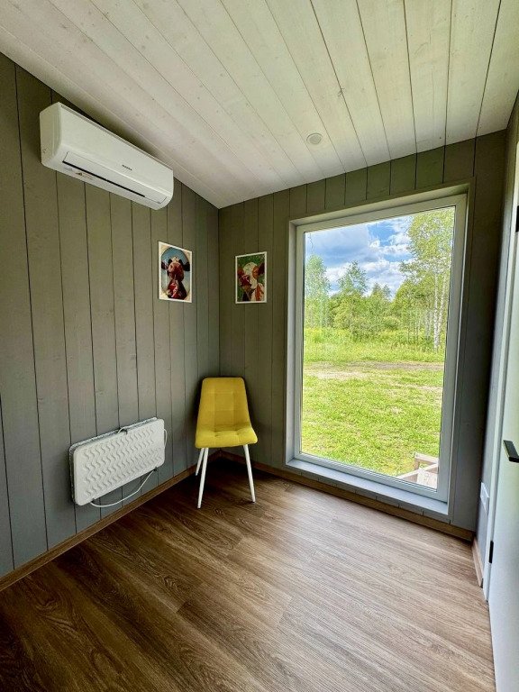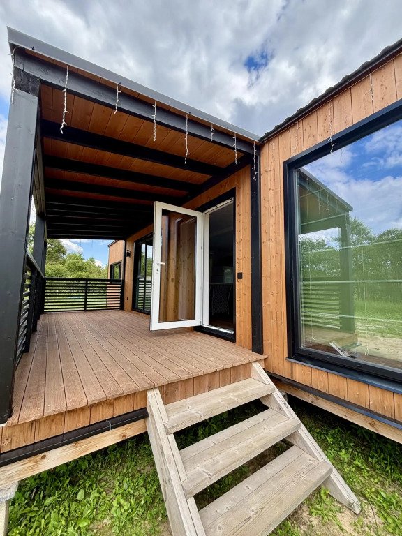 К услугам гостей деревянные домики с панорамными окнами, террасами и родниковой водой, текущей из крана. Каждый дом имеет 3 комнаты: 2 спальни с двуспальными кроватями и общую обеденную зону с кухонным гарнитуром и необходимыми принадлежностями. Интерьер выполнен в деревенском дизайне с использованием экологичных материалов.