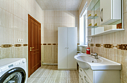 Участок размером 30 соток с ухоженным спортивным газоном украшают величественные голубые ели и сосны. Коттедж рассчитан на комфортное размещение до 10 человек. К услугам гостей высокоскоростной интернет, кабельное телевидение и кондиционеры. Дом полностью меблирован и оснащен всей необходимой бытовой техникой. На первом этаже предусмотрены теплые полы, установлено круглогодичное отопление и подведены центральные коммуникации. Также на первом этаже находится просторная кухня-столовая (18 кв.м.) с зоной для отдыха у телевизора, одна спальня с двуспальной кроватью и совмещенный санузел с ванной. Второй этаж включает две уютные спальни и гостиную с двумя угловыми диванами, домашним кинотеатром и караоке.