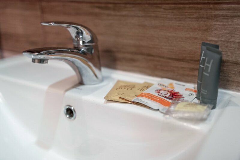 Воды в бутылочках в номере нет, но кухне можно набирать родниковую.