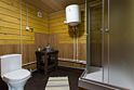 На 1 этаже диван, дровяная печь с варочной поверхностью, холодильник, телевизор, чайник, плита электрическая одноконфорочная, набор посуды, в санузле холодная и горячая вода, мыло, туалетная бумага, полотенце для рук, душевая кабина.